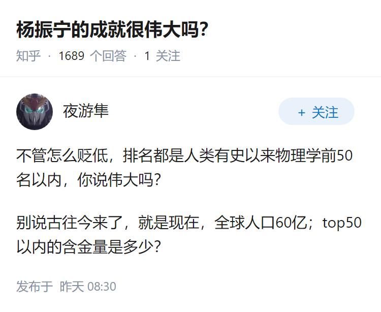 杨振宁的成就很伟大吗?