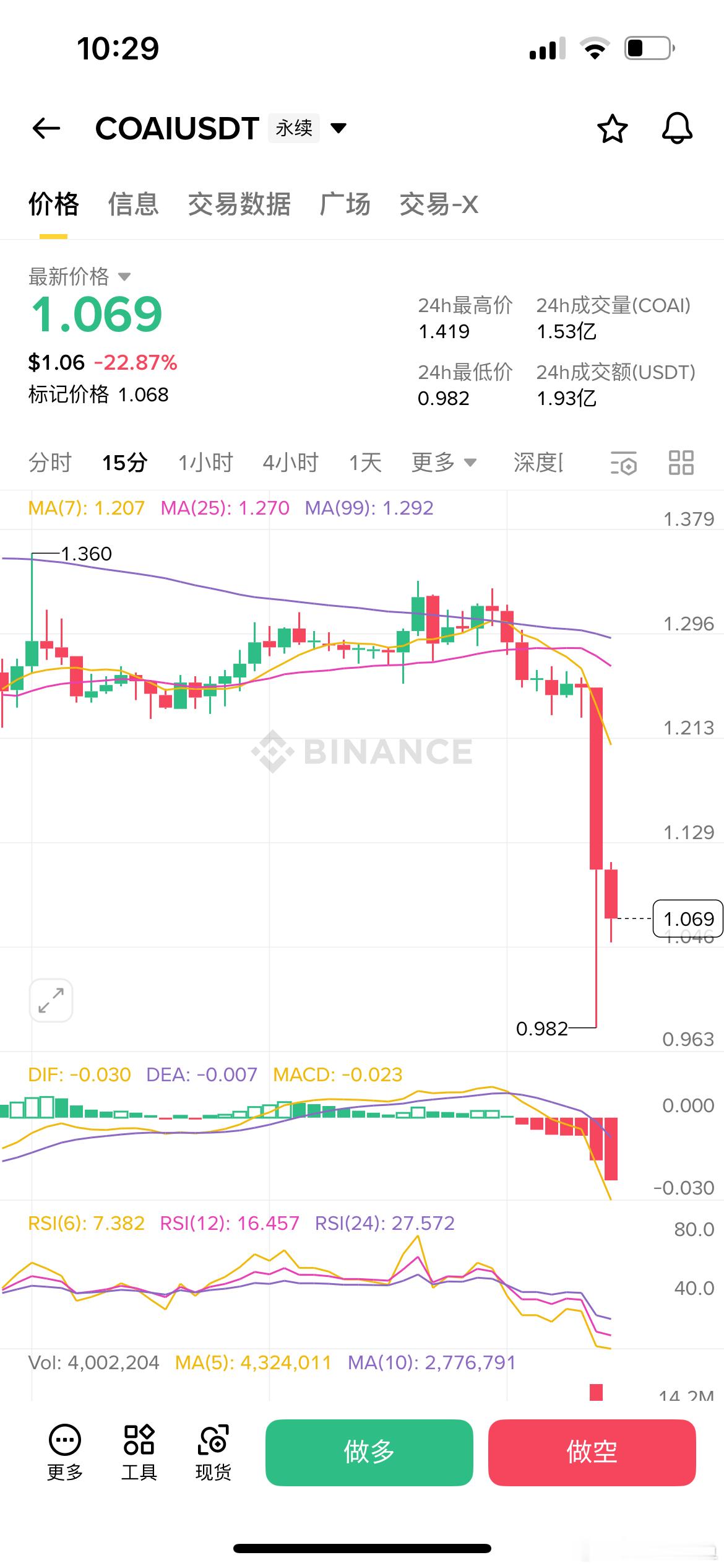 昨天刷到很多kol在给coai打广告,我就觉得还会跌。