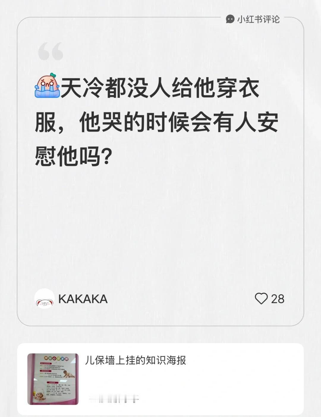 我在嘟嘟胖乎乎的笔记[笔记]下发布了一条评论 [流泪]天冷都没人给他穿衣服,他哭的时候会有人安慰他吗?