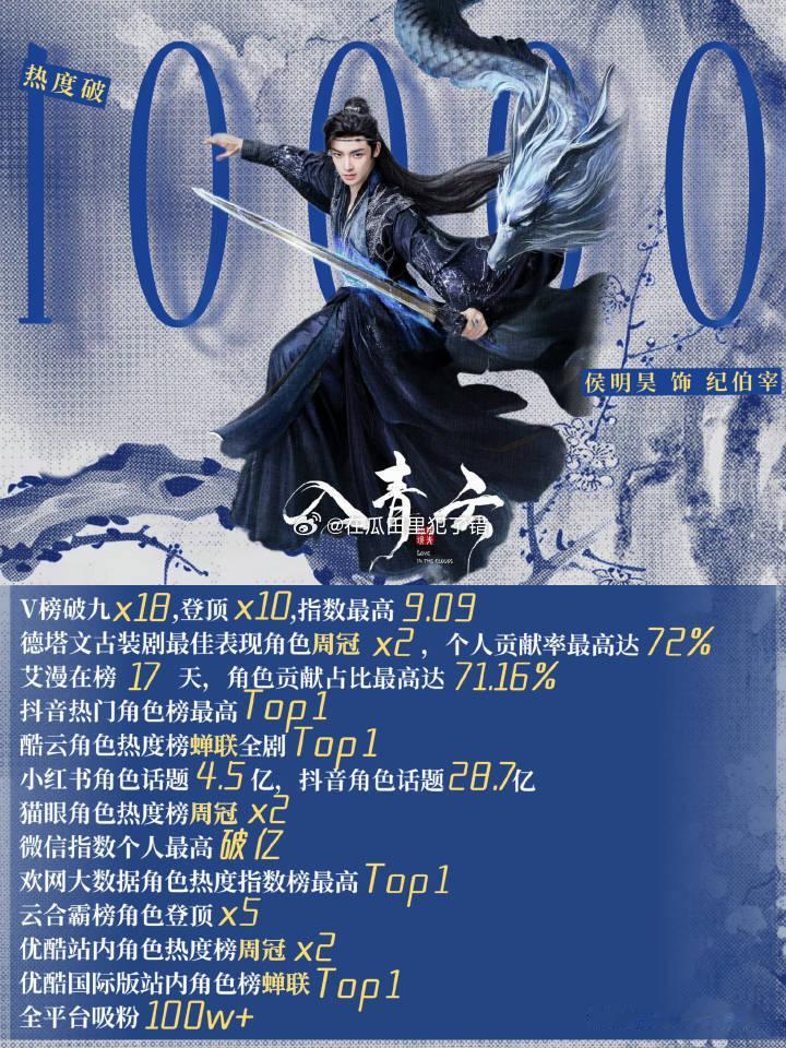 侯明昊的入青云拉新年榜第七,他抖和🍠十月增量第一!三年三部一番破万剧!一步一个脚印扛过会扛招商扛热度的扛剧生!侯明昊[超话]
