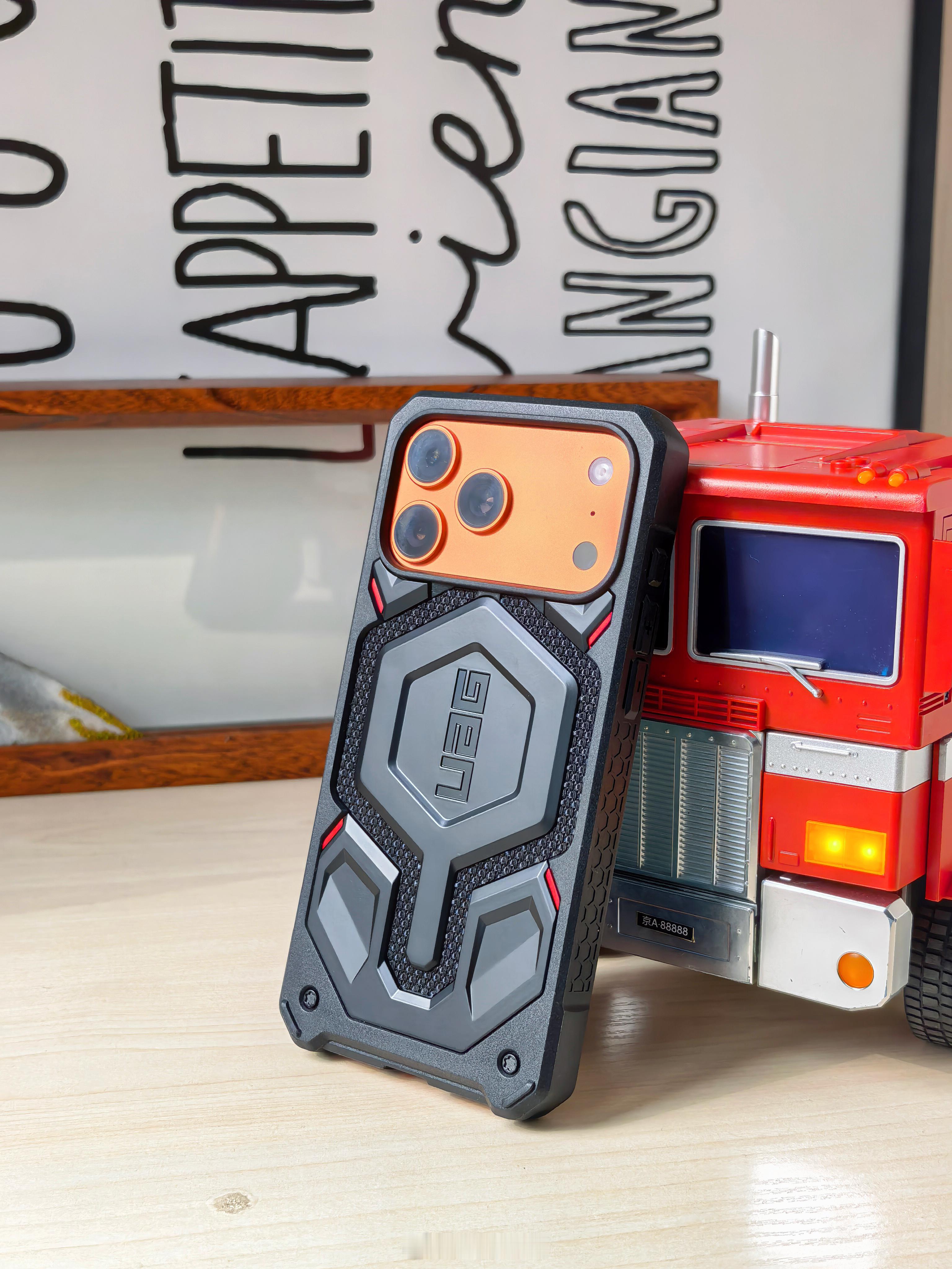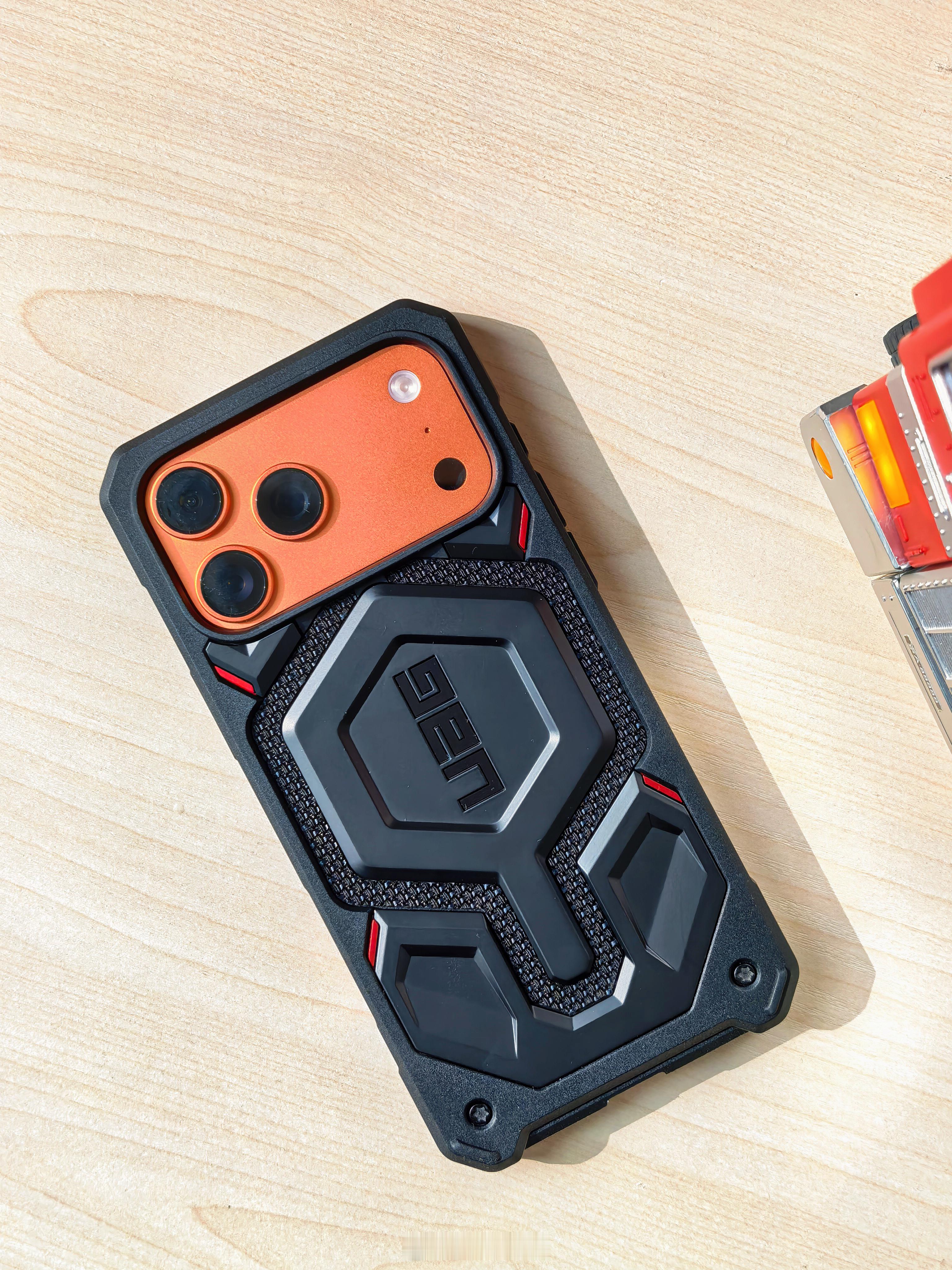 目前最耐摔结实的手机壳应该就得数UAG了吧?给iPhone17 Pro Max 2T版配这款三防壳,直出两米自由落体全方位保护,四角有气囊腔,屏幕边缘也突出一圈,保护极度到位!我的苹果手机搭子