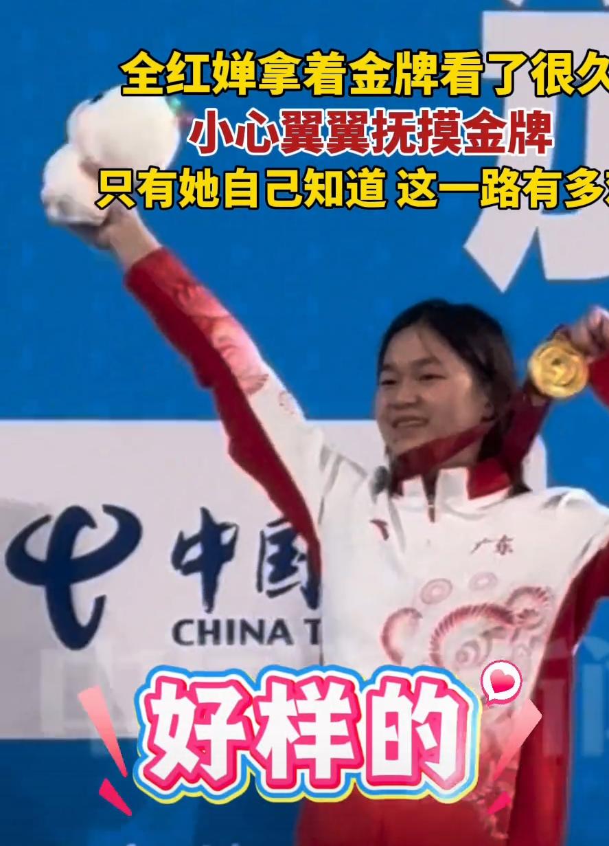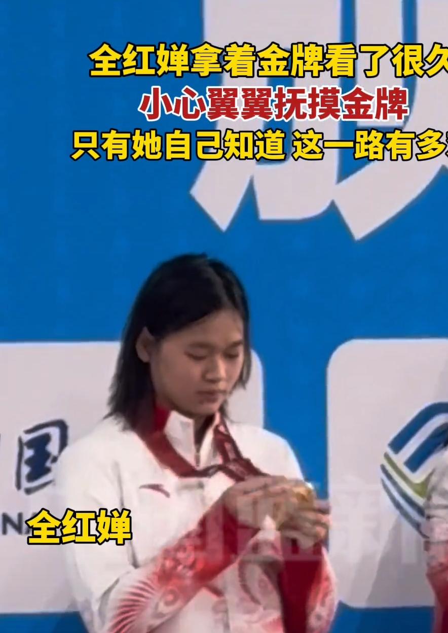 全红婵王者归来!霸气夺冠手捧金牌反复抚摸看哭网友。 今天刷到一个视频,看到全红婵拿着金牌反复抚摸的画面,连我这个不怎么关注体育的都瞬间破防了。18岁的她站在领奖台上,手指一遍遍轻抚金牌纹路,眼神里写满了故事。这小心翼翼的模样,比当年那个咬金牌的小丫头多了太多说不出的滋味。 只要是稍稍关注体育赛事的人都要知道,为了这枚金牌,她整整熬了183天。脚踝韧带损伤、腰椎劳损,还要应对身体发育带来的挑战,训练时手上的胶布缠了又缠。据网上报道的消息称,她在队内测试六个动作全部满分,却差点失去上场机会,她把“能站上跳板就是幸福”挂在嘴边,这话从一个孩子嘴里说出来,不知道你们是什么感受,反正我听着就让人心疼。 如今王者归来,这枚金牌对她来说,早已不是简单的荣誉。她抚摸的,是那些在康复室里咬牙坚持的日日夜夜;她确认的,是自己终于从低谷中重新站起。就像网友说的:“她摸的不是金牌,是悬崖边上开出的花。” 从懵懂少女到沉稳王者,这枚金牌里装着的酸甜苦辣,恐怕只有她自己最能体会。婵宝,继续闪耀吧!