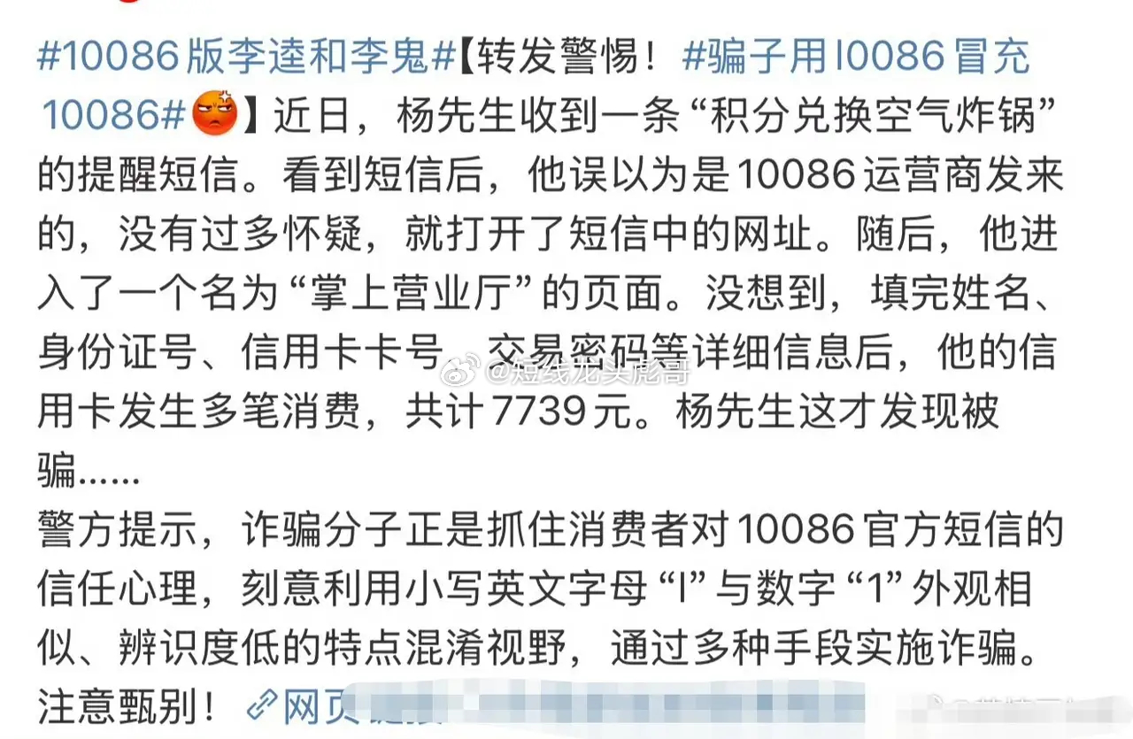 大家注意!又有“李鬼”冒充10086了!