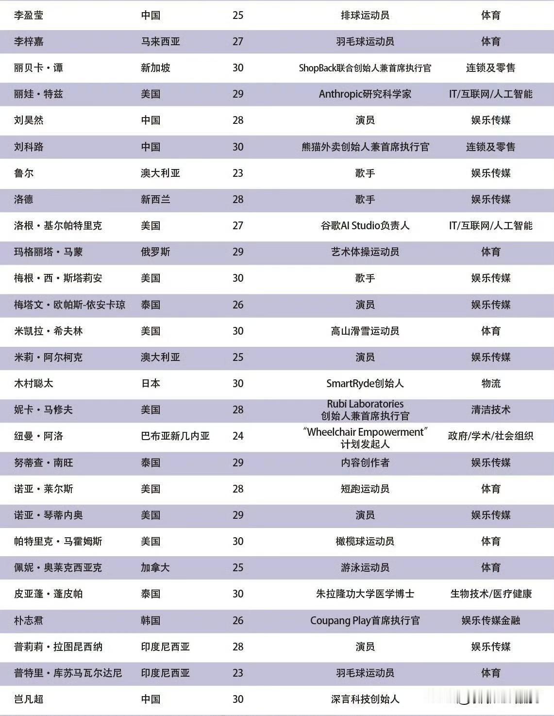 李盈莹太优秀了!凭借着在排球领域的出色表现,入选亚太U30杰出青年领袖!妹妹李盈莹在世界领域的知名度仍在不断提高,像这种榜单一般都是根据奥运会的表现来评选的,当年朱婷好像也入选过!李盈莹在亚洲几个排球强国,日本、韩国、泰国中也是数一数二的球星!