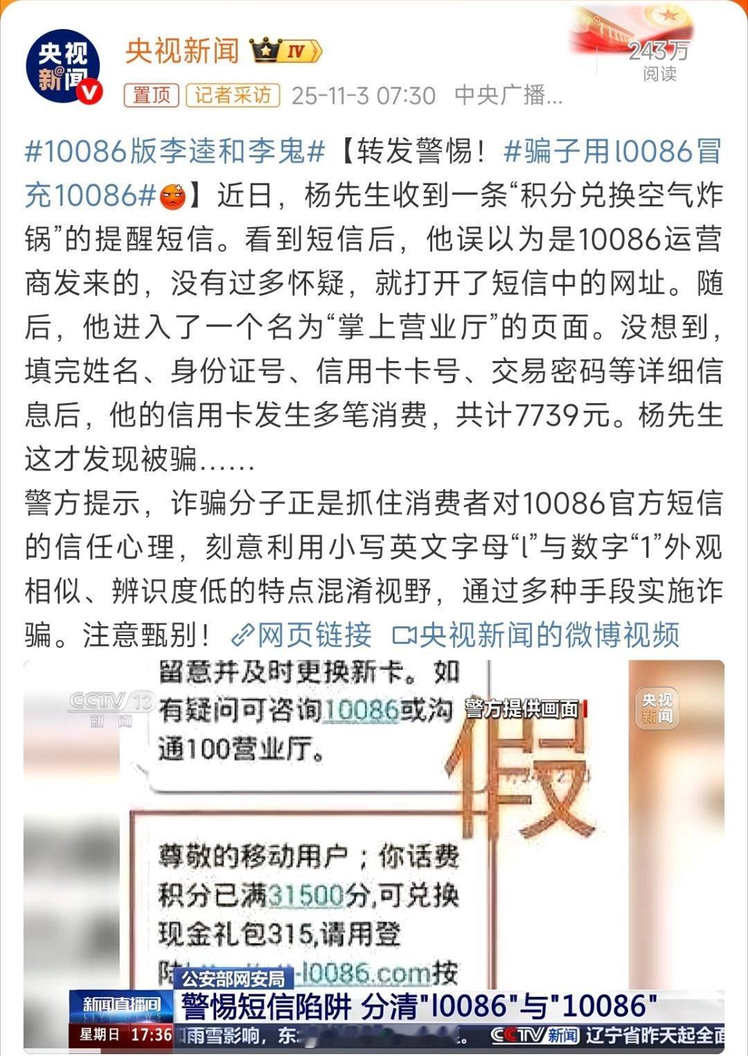 骗子用l0086冒充10086
