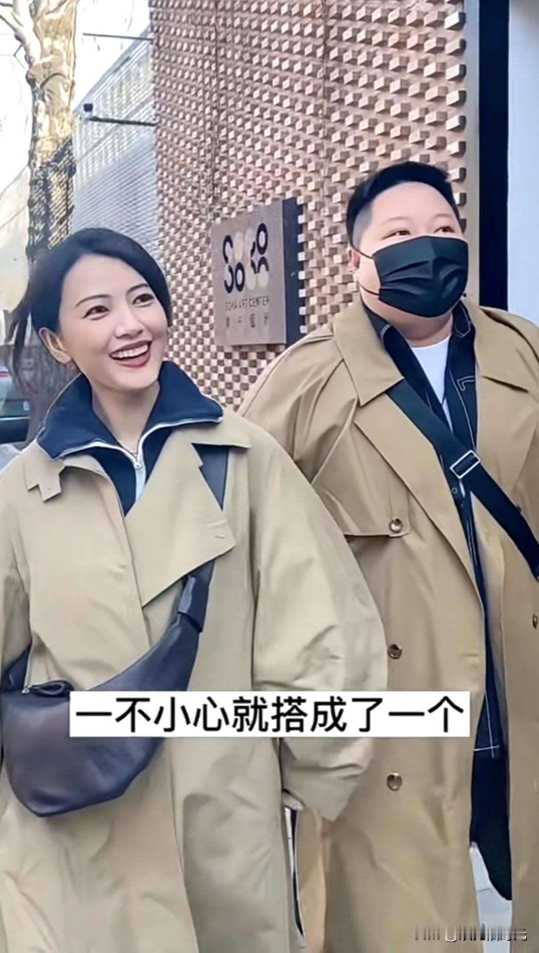 高圆圆出门谈事情,穿了一件卡其色的风衣,结果和同事碰面的时候,意外的两人撞衫了。 她哈哈一笑,顺势摘下了口罩,完全没想到俩人竟然如此默契。 卡其色是很受欢迎的颜色,不限制肤色,不限制年龄,不受性别影响,难免就撞衫了[捂脸]。 有网友扒出她这件风衣是国外某知名品牌,价格在4000元左右,反正我是看不出牌子,就觉得她人美穿什么都好看。