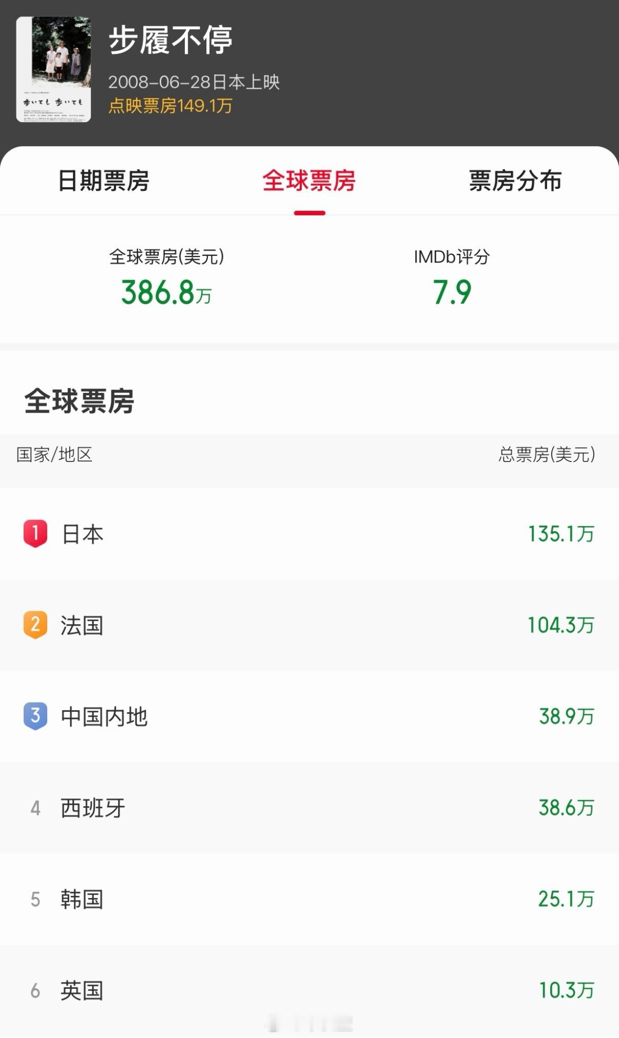 周末仅在全国25城部分影院上映的是枝裕和经典名片「步履不停」获得150万的票房,甚至超过了许多全国影院上映的中外商业片,中国也成为该片全球票房排名第三的国家,仅次于日本和法国。
