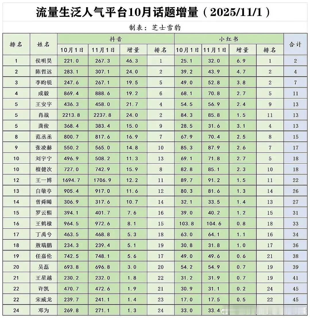 入青云拉新年榜第七,侯明昊🫘🍠十月增量第一!有效播剧!