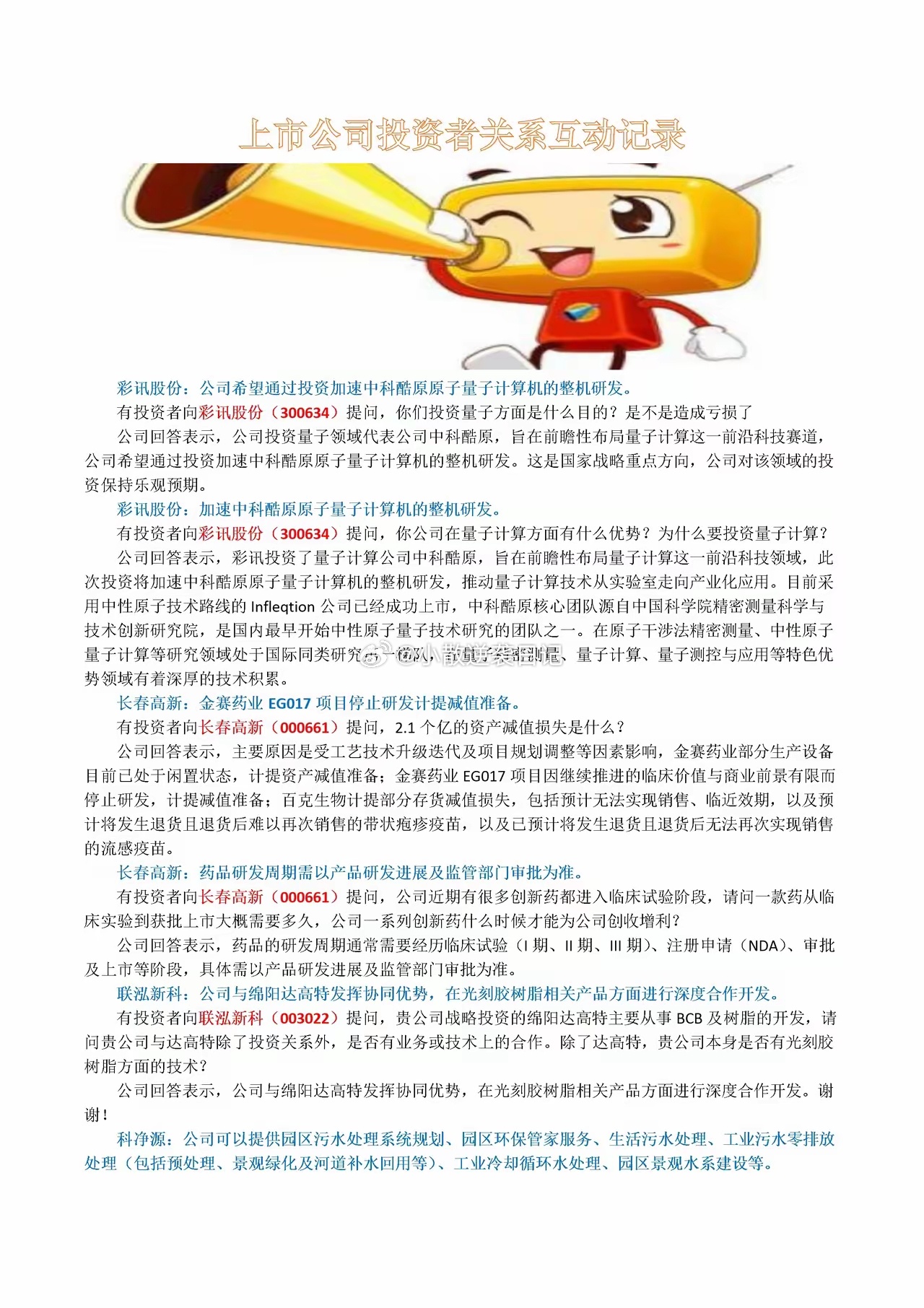 上市公司投资者互动动态速递:量子计算、光刻胶、环保等领域披露最新进展