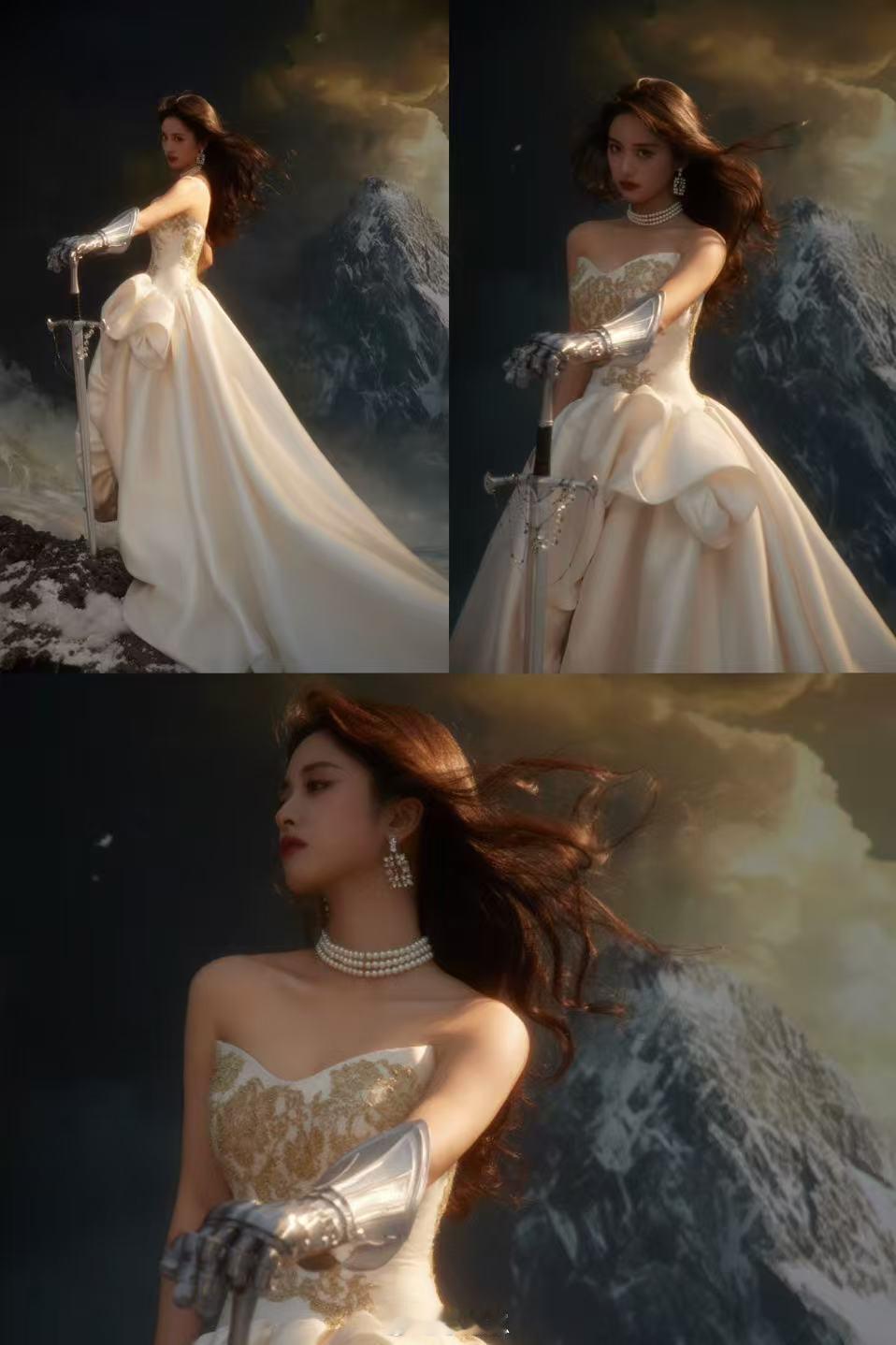 沈月圣女骑士沈月这圣女骑士造型太绝了!白礼服配金绣超华丽,持剑时英气拉满,和柔美