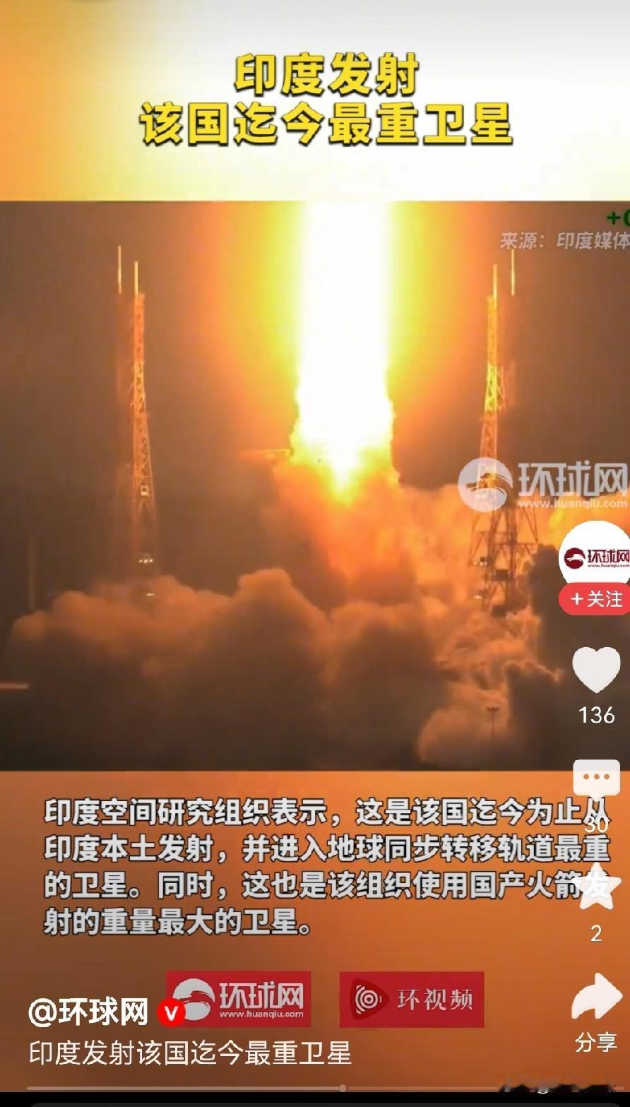 不得不佩服印度的决心,要发射就发射最重的的火箭! 印度眼看中国神舟二十一号载人飞船发射成功,中国的国家空间站发展迅猛!印度也不甘落后,也不甘示弱,今天发射了最重的火箭! 就在全球都在围观各国太空发展动态的时候,印度选择了一个很直是印度这次把压箱底的本事拿出来了。 印度这次用的是他们自研的GSLV Mk III火箭,也就是外界常说的“胖男孩”,这个名字听着有点可爱,其实一点都不简单。 这型火箭是印度空间研究组织专门为重型卫星和未来载人航天任务设计的。你看它的外形就知道,个头不小,推力也够猛。 这次发射的卫星重得离谱,是他们迄今为止发射质量最大的一颗,而且成功进入了地球同步转移轨道,这个轨道可不是谁都能轻松送上去的,技术要求高,精度要准。 这就说明印度在航天技术上确实有两把刷子。再看这个时间点就更有意思了。中国刚刚成功发射神舟十七号,标志着中国空间站的长期运行进入了新阶段。 在外界聚焦中国载人航天进展的时候,印度几乎是“秒回”的节奏,立刻带来了这次重型火箭的发射消息。这不是巧合,印度一向以中国为竞争对手,尤其在高技术领域。 两国的发展节奏经常被拿来比较。虽然印度目前在载人航天方面还没有实现实质性突破,但从这次发射可以看出,他们确实在一步步地往这个方向努力。 印度的航天发展其实有点像“少花钱多办事”的代表。他们预算不大,发射成本低,但成果一个接一个。这次重型卫星的成功发射,不仅说明他们的技术积累到了一个新阶段。 也说明他们在高轨道部署方面已经有了可靠的手段。尤其是在通信、气象、导航等领域,这种大质量卫星的部署可以极大增强他们的自主能力。 别忘了,地球同步轨道可是全球通信的“黄金轨道”,谁能在这上面稳住脚跟,谁就能在信息技术上多一分话语权。 而且这次发射也有一个很关键的意义,就是为将来的载人航天任务打基础。GSLV Mk III本身就是印度未来发射载人飞船的主力火箭,这次发射成功,等于是给这个计划加了一层保险。 虽然印度的载人飞船“加甘扬”计划一再推迟,但这并不代表他们没在推进。相反,每次相关火箭和系统测试成功,都是朝目标迈出的一步。 现在他们已经完成了逃逸塔的测试,接下来只要乘组系统、生命保障系统这些关键环节跟上,载人飞行也不是遥不可及。 当然,印度这种“高调操作”也很容易引起外界关注。有些人会拿他们国内的经济条件和基础设施问题来对比,觉得他们搞航天是不是“脱离实际”。 但现实是,科技投入本身就是一个国家提升竞争力的关键路径,尤其是航天这种高科技集成度极高的领域,不但能提升国家形象,还能带动一系列上下游产业发展。 对于印度这样一个人口大国来说,发展航天不光是面子问题,更是里子问题。这次发射的成功,对他们来说就是一次高质量的“练兵”,也是一次向世界展示实力的机会。 虽然距离中国的空间站建设还有一段路要走,但印度这种不服输、不怕难的劲头,确实值得佩服。未来谁能在太空领域占据更大优势。 不只看谁先上去,更看谁能稳得住、走得远。而印度这次最重火箭的发射,算是他们在这条路上,踩出的一个响亮的脚印。