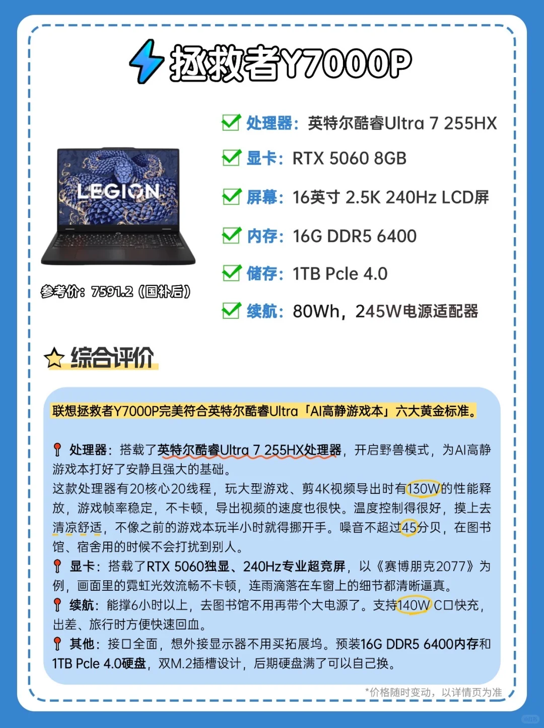 联想拯救者Y7000P完美符合「AI高静游戏本」六大黄金标准。