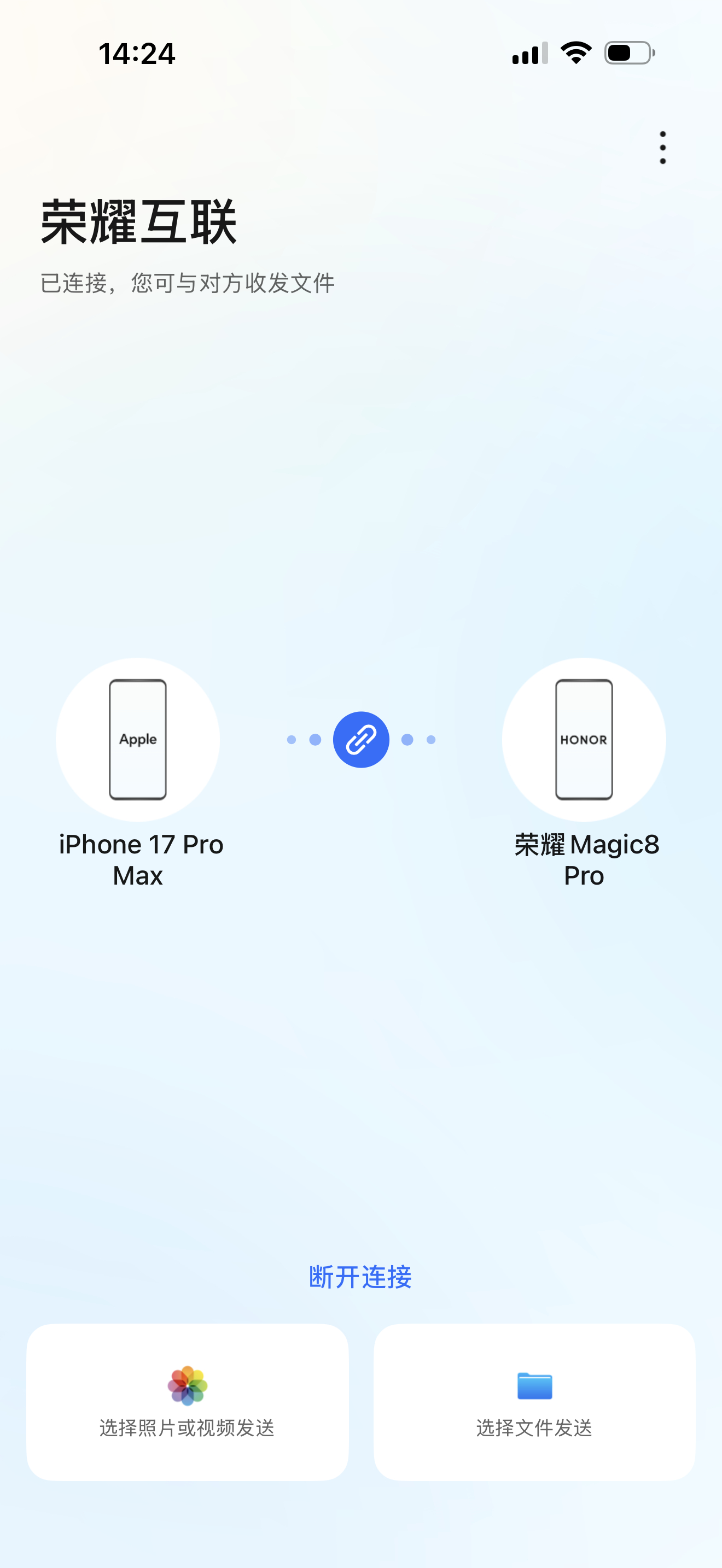 荣耀和苹果互联只能传文件? 还要加热点? 没有其他功能嘛?