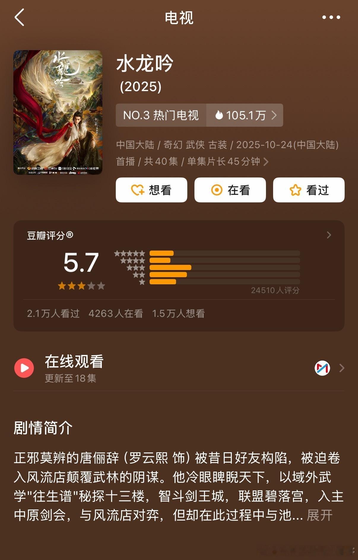 罗云熙水龙吟豆瓣开分5.7 ,高了低了