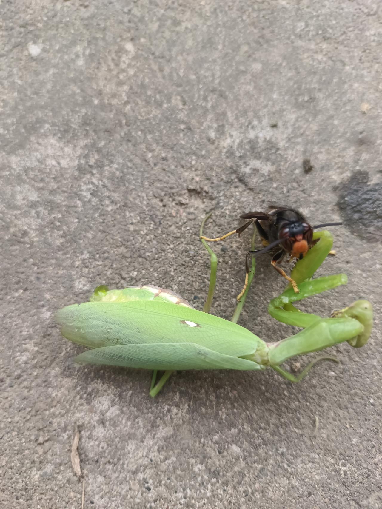 我之前拍到过螳螂捕蜂的精彩瞬间。当时我在公园闲逛,突然瞥见一只螳螂正蓄势待发。它那瘦长的身躯隐藏在绿叶间,前肢紧紧收拢,眼神死死盯着一只蜜蜂。 蜜蜂浑然不觉危险,依旧慢悠悠地在花丛中穿梭。就在蜜蜂靠近的刹那,螳螂以闪电般的速度伸出前肢,一下子就夹住了蜜蜂。蜜蜂拼命挣扎,嗡嗡声似乎在求救,可一切都无济于事。螳螂开始享用它的“大餐”,这一幕就像一场激烈的战斗。这张照片记录了大自然弱肉强食的生存法则,每次看到都觉得很震撼。