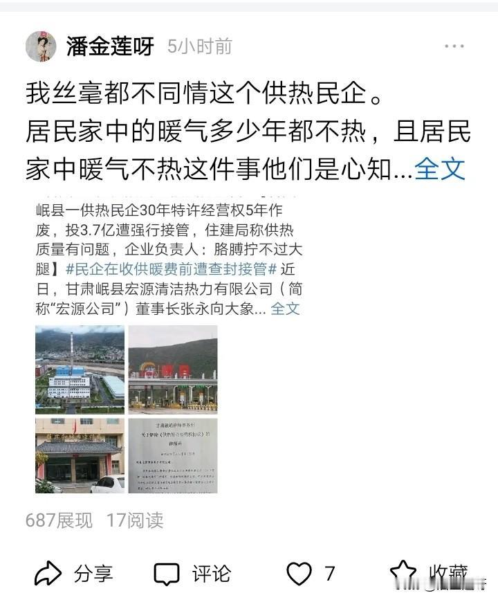 总共3万多用户,其中每年都有1万多用户是欠费,在这1万多户里又有1千多户是领导,不能收费。 既然如此,就应该去找这1千多户领导。 为啥要曝光出来?曝光出来的目的不就是想借用老百姓的力量来为你们维权吗? 那我问问你们,暖气不暖,你们置之不理,现在遇到困难想起民众的力量了? 有句话怎么说来着,既要………又要……!