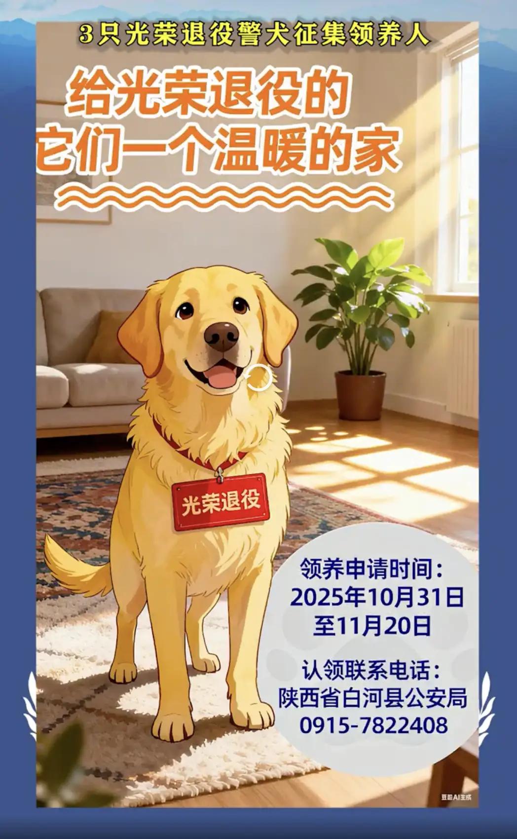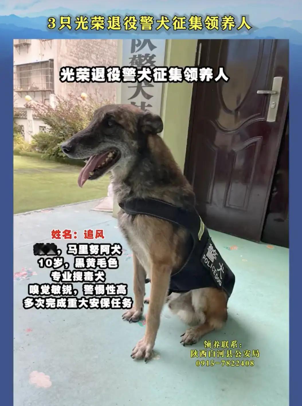 给光荣退役的它们一个温暖的家!陕西3只退役警犬征集领养人。 在这个快节奏的时代