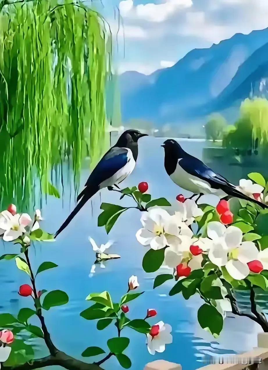 上联:蝶舞花香春色浓 下联:莺啼柳翠百花香 横批:春和景明