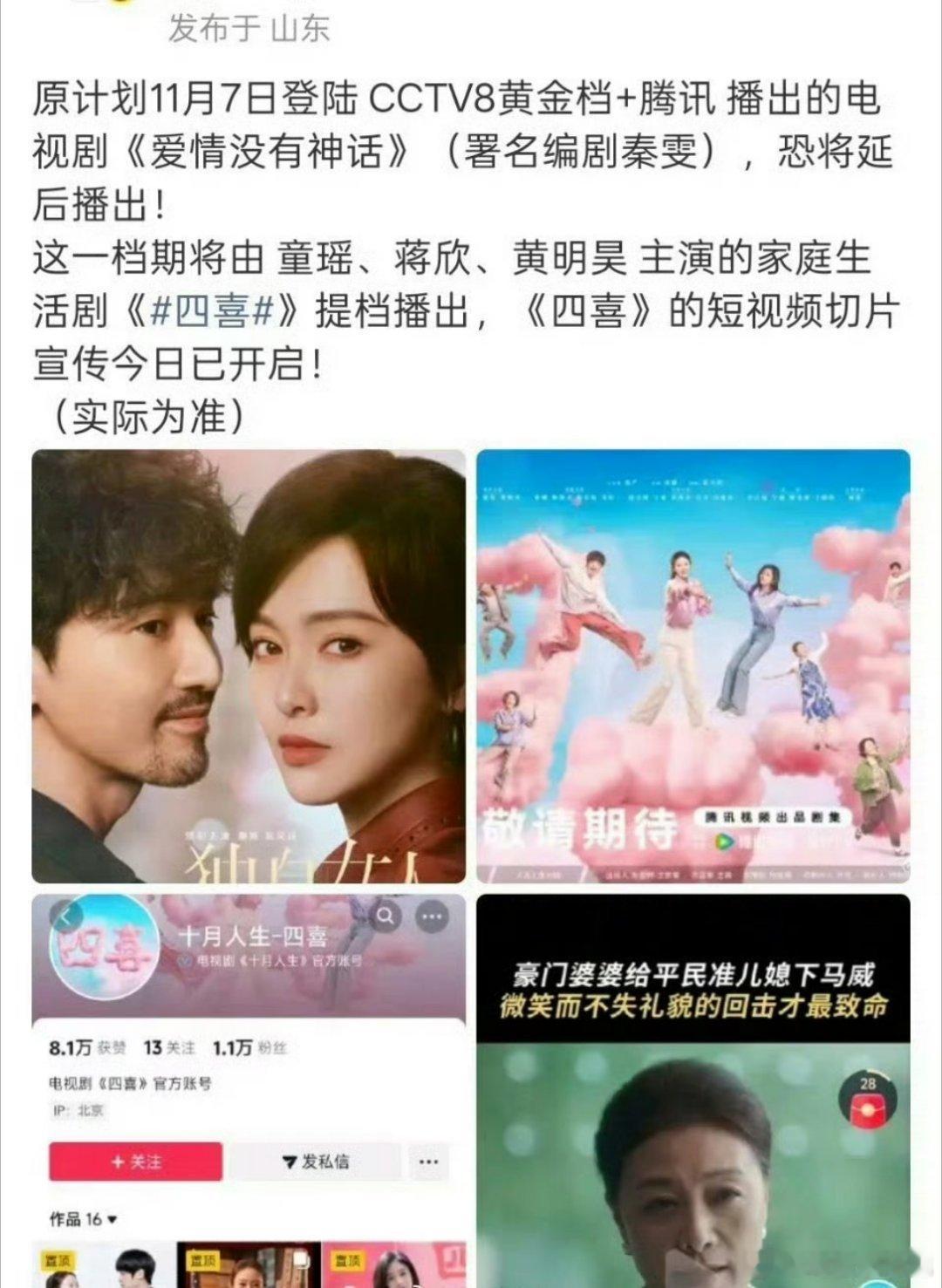 网传唐嫣新剧《爱情没有神话》(独身女人)撤档了,还挺想看🍬演的都市剧的,怎么就撤档了啊,那还得等到什么时候呀[晕][晕]