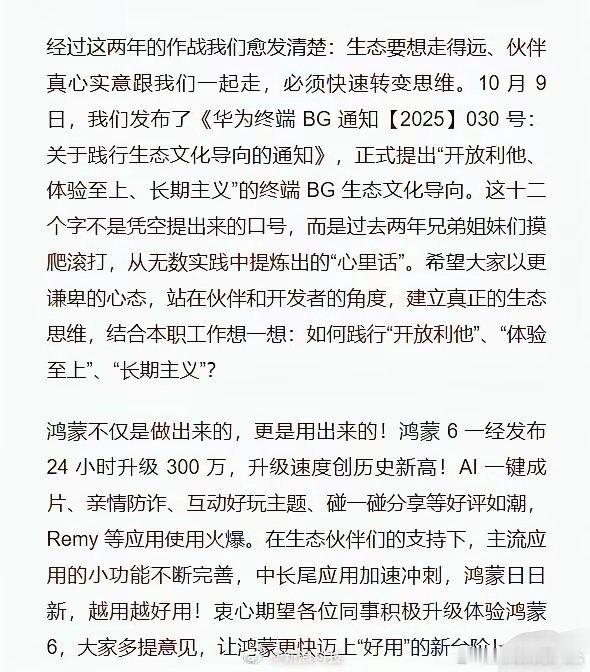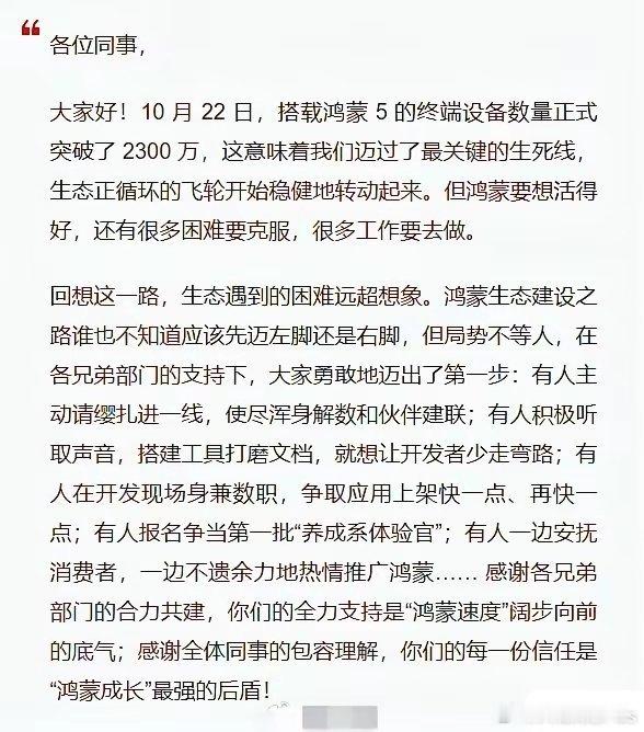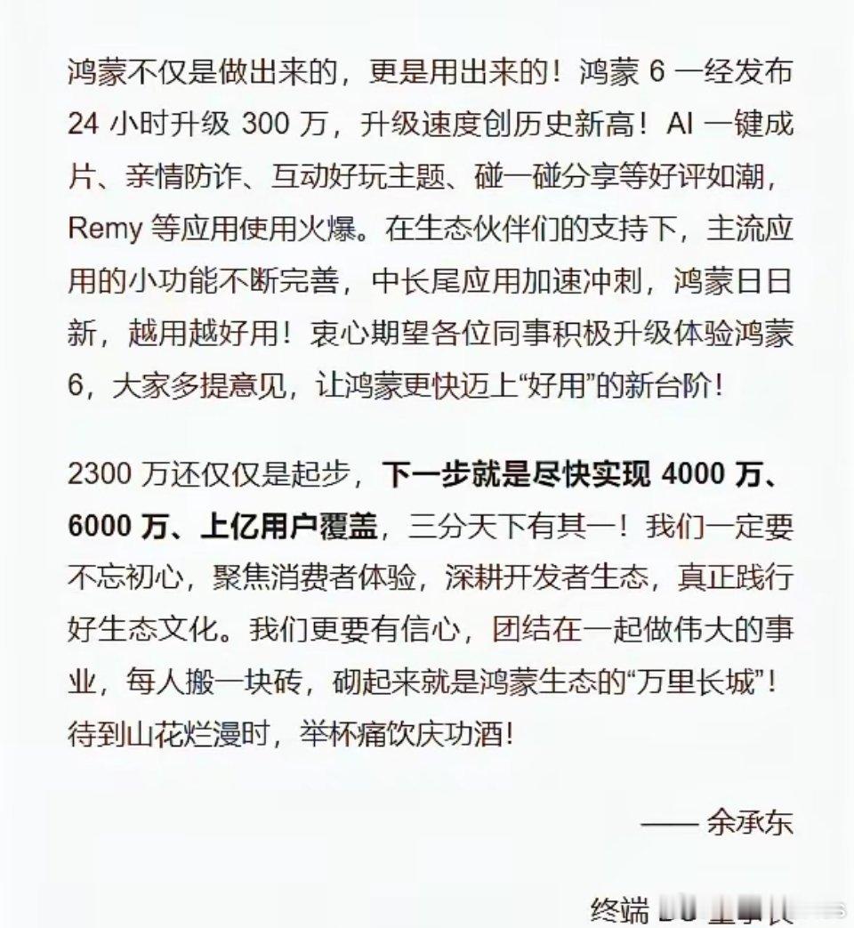 余承东致员工信: 鸿蒙要三分天下有其一!