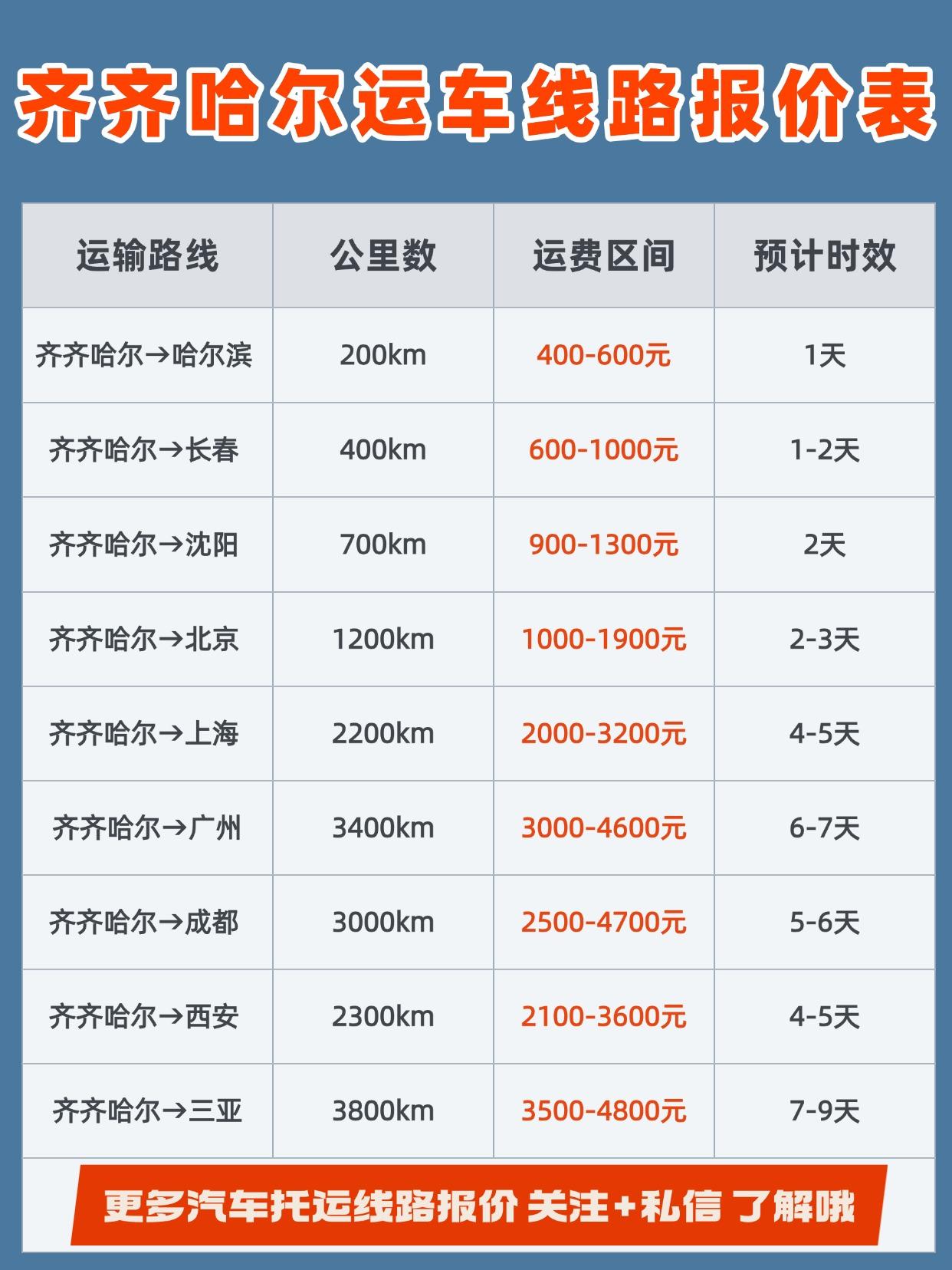 📦 全国报价区间 & 时效 ✅ 基础运费: 东三省内:2000-3500元 华北/华东:2500-5000元 华南/西南:3500-6500元 西北/海南:4500-8000元 ⏱ 时效参考:每1000公里约2-3天,偏远地区+1-2天。 ❓ 汽车托运可以在中途进行上下车吗? 一般情况下是不可以的哦!汽车托运主要是点对点服务,车辆装车后直接运往目的地,中途不停靠上下车。如果有特殊需求,一定要提前和物流公司沟通,但可能会产生额外费用。 ⚠️ 运到后发现有损伤咋办? 重点!必做这4步! 当场验车+拍照录像:划痕、凹陷、启动异常都要记录! 拒签交接单:有问题先别签字!立刻联系客服! 查保险单:正规公司必买「车辆运输险」,凭证据理赔! 投诉维权:公司推诿就打 12328(交通运输服务监督)! 🌟 楠楠Tips: 选托运公司盯死3点! ✔️ 营业执照+道路运输许可证 ✔️ 合同明确收费明细和赔付条款 ✔️ 保险保额≥车辆估值(别信口头承诺!) 总结划重点🔑: 💰 价格按距离算,东三省最便宜; ⏰ 时效看路线,超3000公里备5天+; 🚫 中途别想停车,规划好再托运! 📸 收车必验货!有问题当场刚!