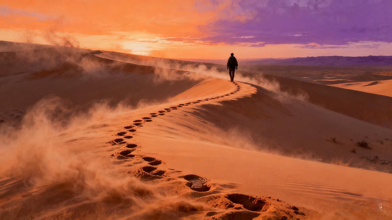 “你走的每一步,都在为未来的自己铺路——哪怕现在看不见,路也在脚下悄悄生长。” 这让我想起童年乡间那条土路。雨天里,赤脚踩在泥泞上,每一步都留下浅浅的印痕,旋即被雨水注满,变成小小的水洼。那时只顾低头看脚,觉得每一步都陷在泥里,很快就会被新的雨水抹去。可多年后回去,那条路还在,只是铺了石子,变了模样。只有路旁的老槐树记得,最初的痕迹是如何一寸寸延伸,从田埂连向大路,从村庄通往远方。 其实我们每个人都在重复这样的行走。深夜灯下的苦读,字字句句都像是落在虚空里的脚步;职场里小心翼翼的摸索,每个决定都像在雾中试探前行。那些看不见回报的坚持,那些不为人知的努力,都像是种子埋进冻土——你以为的徒劳,地底下的根系却正在黑暗中倔强地伸展、交错、盘结。 路的神奇就在于此。它不是先在那里等你来走,而是随着你的脚步一点点成型。就像沙漠里的行者,回头看时才发现,那些看似即将被风沙掩埋的足迹,其实已经连成了一条蜿蜒的曲线,指向你来的方向,也暗示你去的路途。 所以不必焦虑此刻的迷茫。你在会议室里鼓起勇气的发言,在厨房里为家人精心准备的一餐,在晨曦中独自奔跑的身影——这些看似不相关的片段,都在时间的织机上穿梭。它们会在某个不经意的时刻突然连成图案,让你恍然:原来那些散落的点滴,都是这条路必要的铺垫。 路在脚下,更在心上。它不只是地理的延伸,更是生命的轨迹。那些读过的书变成了你的视野,爱过的人塑造了你的性格,流过的泪淬炼了你的坚韧。这一切都在无声地构筑着你前行的路基。 继续走吧。哪怕此刻浓雾弥漫,看不清三步之外的风景。你要相信,每一步落下,都有一粒沙石在黑暗中悄然就位;每一次抬脚,都有一寸道路在无声里向前蔓延。等某天你站在高处回望,会看见一条清晰的路从脚下一直铺到天际——而这条路,正是由你每一个平凡却坚定的脚印镶嵌而成。