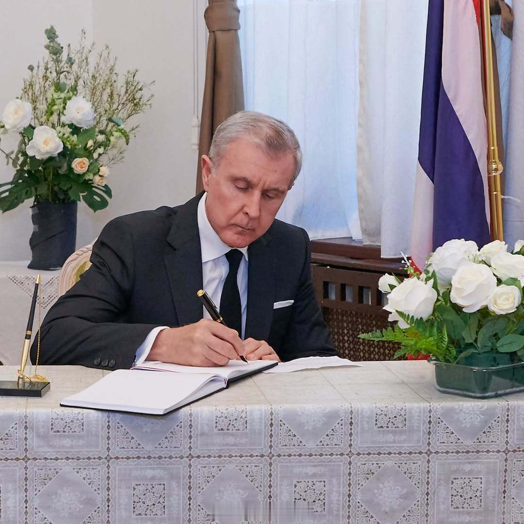 听闻泰国的诗丽吉王太后病逝,罗马尼亚的拉杜亲王代表他的妻子玛格丽特女王储在罗马尼亚布加勒斯特的泰国驻罗马尼亚大使馆签署吊唁簿🇷🇴这是继西班牙的索菲亚王太后之后,又一个王室代表在当地大使馆公开签署吊唁簿。