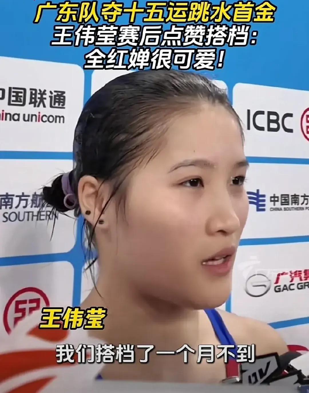 全红婵的搭档王伟莹也一战成名了,被大家关注到了。 她说和婵宝搭档了一个月不到,但是压力太大了!我现在都不敢洗头,怕一洗头掉20根头发。婵宝是奥运冠军,我怕做不好连累了她。 王伟莹说的可以说非常谦虚了,一直在说婵宝优秀,自己要像她学习。其实她自己本身也很优秀呀,只能莹莹也是个谦虚人品好三观正的孩子。 最后小姑娘,你就跟婵宝搭档吧,她是个福星,谁跟她都有好兆头有好运气的。而且你们都很好,相处起来一定很愉快