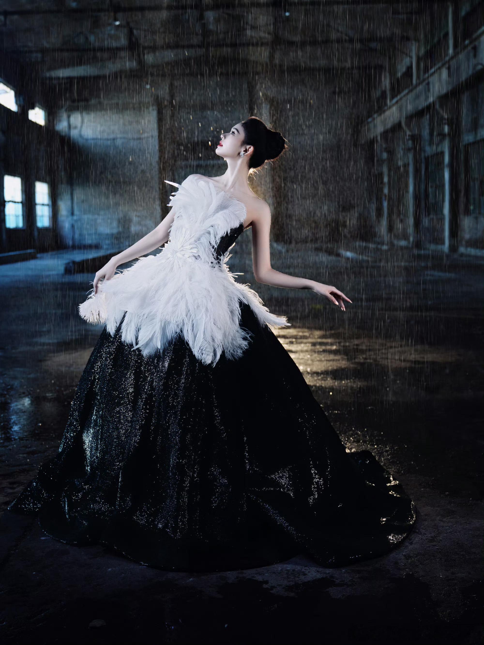 林允cos天鹅之梦当抹胸白羽遇见黑色亮片裙摆!林允完美驾驭天鹅之梦的优雅与神秘。执伞回眸间自带破碎感,肢体舒展时轻盈如画,今晚红毯因她而闪耀。