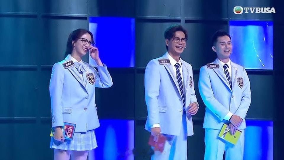 林盛斌、施宇琪、袁文靜主持台慶綜藝知識問答節目《攻你上大學》最高收視13.8點(90萬觀眾)。(截圖)