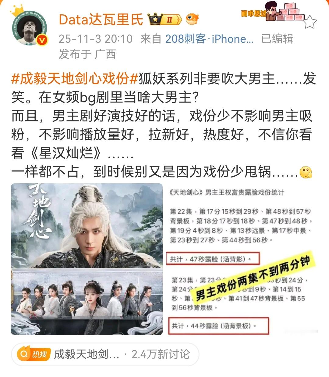 确实,吴磊在星汉灿烂中戏份比女主少很多,但人家演技好,台词好,他的很多戏都令人印