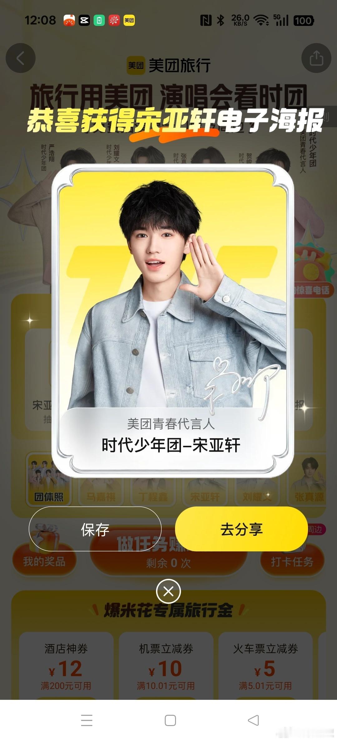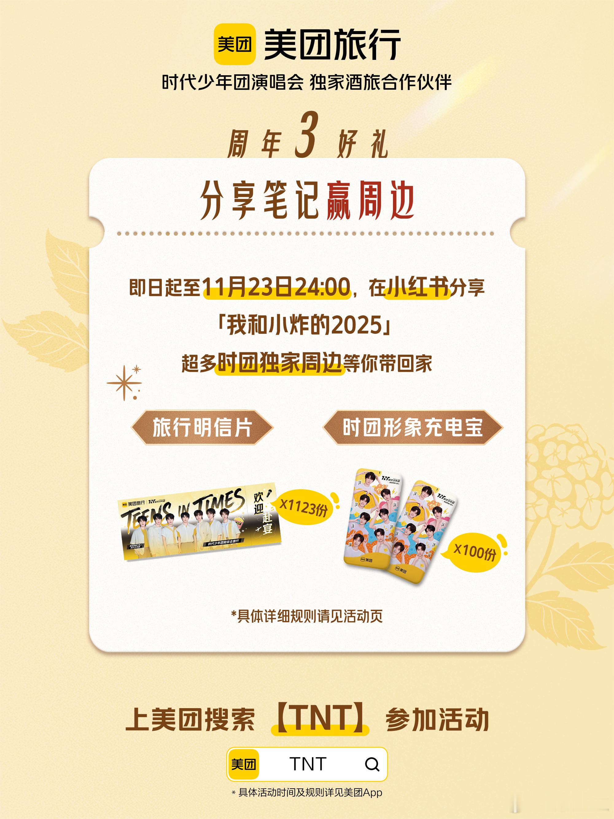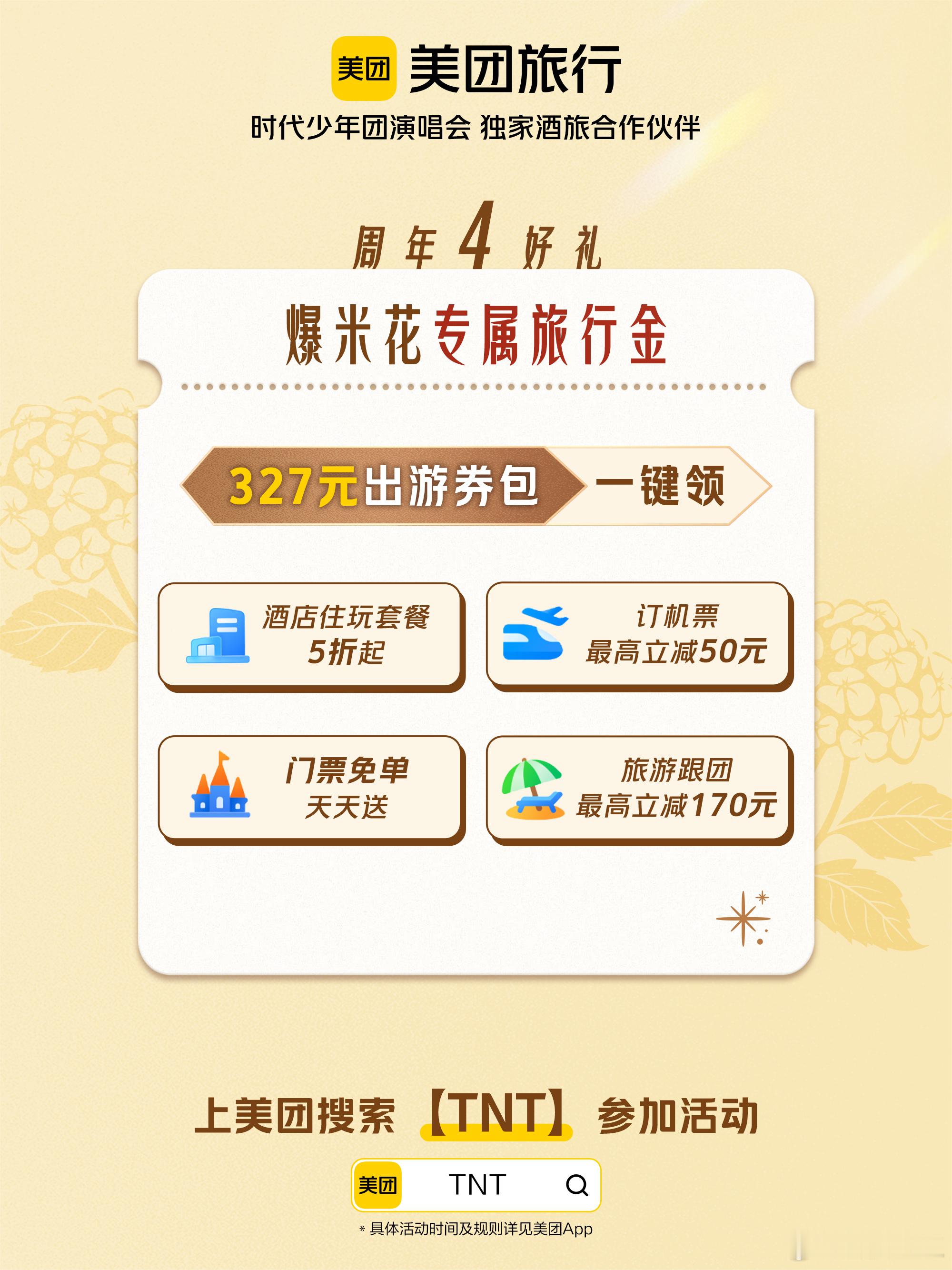 美团旅行请你看时团六周年 看到美团旅行与时代少年团六周年联动的消息,作为老粉的我瞬间沸腾!这波合作精准洞察了粉丝需求,将抢票、订酒店、规划路线等繁琐环节一站式解决,堪称追星福音。