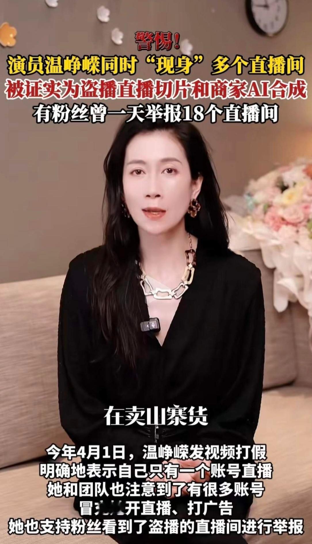 明星带货居然能“分身术”? 11月2号有网友刷到温峥嵘居然同一时间在三个直播间带货,还穿了三套不一样的衣服,粉丝来回切屏都看傻了:到底哪个才是真的?更离谱的是记者搜相关内容时,直接刷到4个“温峥嵘”推不同产品的视频,产品不一样,话术却一字不差!关键这些广告连AI生成的标注都没有,根本分不清是盗播切片还是AI合成的假人。有粉丝说一天就举报了18个伪造她的直播间,这些商家也太胆大包天了吧!这明显是侵犯肖像权,既骗消费者又坑明星本人啊。 以后刷明星带货还真得擦亮眼睛,别被假账号忽悠着下单了!明星带货