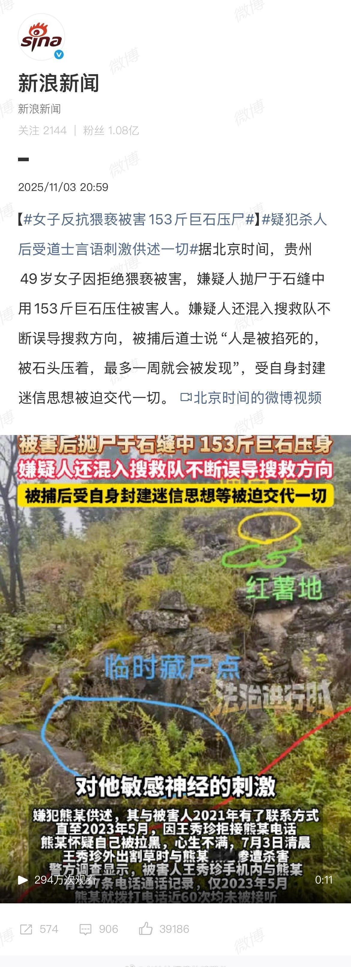 贵州省高院二审以故意杀人罪判处熊某死刑,缓期二年执行,限制减刑(实际服刑不低于20年)。法院认定其供述埋尸地点构成“坦白”情节。