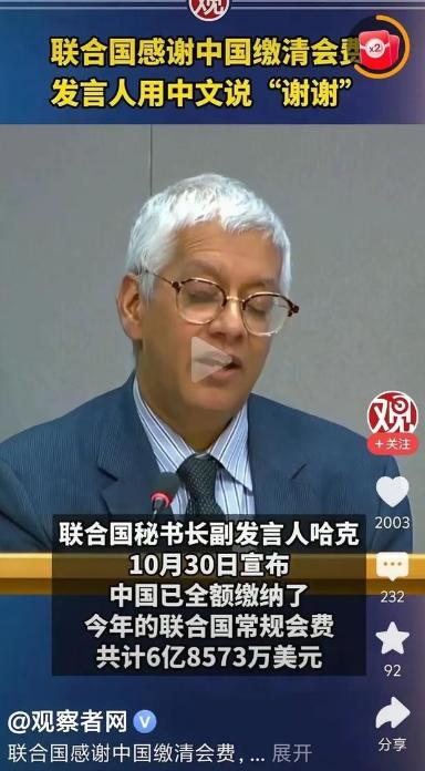 为何中国总是在联合国积极缴费,而联合国却经常成为针对中国的平台?答案很现实,也很压抑。如果不缴费,那将成为欧美打压和攻击大国的论坛,那时我们的形势会更加被动。 不少人心里都拧着个疙瘩,中国在联合国掏着真金白银当“二股东”,摊着20%的会费比额,仅次于美国的22%,比日本的6.93%高出一大截,可联合国怎么反倒常成针对中国的平台?涉台提案、涉疆谣言总在这地方冒头,看着就窝火。 但真要掰开揉碎了说,这钱还真不能省,答案现实又扎心,不缴,我们只会更被动。先搞懂联合国的“游戏规矩”:这地方可不是白干活的,全年的维和行动、国际救援、机构运转全靠会费撑着。 《联合国宪章》写得明明白白,要是欠的会费达到前两年该交的总数,除非真有没法抗拒的理由,不然联大里的投票权就没了。去年年初有数据说,美国光常规预算就欠了15亿,加上维和这些款项总共拖了28亿,可它凭着霸权,没人敢真把它怎么样。 但中国不一样,我们要是欠缴,欧美早把“不负责任大国”的帽子扣过来,顺着这个由头在联合国里兴风作浪,到时候连辩解的资格都可能被剥夺。有人说“那干脆退出算了”,这话听着解气,实则把路走死了。 联合国再让人不舒坦,也是现在唯一能管全球事、说话有点分量的地方。比如美国想在台湾问题上搞鬼,得跑到联合国大会上递提案;西方造谣新疆“强迫劳动”,也得借着联合国人权理事会的地方喊。这些场合看着是“针对中国”,但反过来看,也是我们公开亮明立场的舞台。 去年西方又拿涉疆议题炒作时,中国代表团当场拿出新疆棉农丰收的视频、企业生产数据,还邀请多国大使实地考察,硬是把谣言怼了回去。要是没缴会费丢了说话的资格,我们连递材料、发声明的机会都没有,只能眼睁睁看着西方自己编“真相”。 更别说联合国安理会的否决权,虽说和会费没直接关系,但长期欠费落下“不靠谱”的名声,肯定会让我们用这个权利的时候没那么理直气壮。这钱缴的,更是为了攥住“朋友圈”的话语权。中国作为第二大会费国,背后站着的是广大发展中国家。 我们用这笔钱支持联合国的减贫项目、帮着建非洲疾控中心,在气候大会上为小岛国争生存权益,这些可不是当冤大头,而是在联合国的规矩里拉近距离、攒人气。去年联大投票反对美国制裁古巴的提案,近190个成员国里180多个都投赞成票,这背后就有中国长期仗义执言攒下的信任。 换个角度想,欧美在联合国针对中国,本身就说明他们没别的招了。军事上不敢真打,经济上又没法彻底断开,只能跑到国际平台上耍嘴皮子。而中国积极缴费、主动参与,恰恰是用规则反制规则。 比如我们推动建联合国国际发展知识中心,把“一带一路”的合作经验变成大家都认的理;维和行动里我们派了5000多名维和人员,是安理会常任理事国里派兵最多的,这些实打实的贡献,比空喊口号管用多了。 当然,憋气是真的,但清醒更重要。这就像在商场里开店铺,物业费再高也得交,不然不仅没资格参与定行业规矩,还可能被同行联手挤兑。中国缴联合国会费,不是服软,而是以进为退,按着规矩保住说话的权利,用真本事拉支持,慢慢把欧美说了算的话风扭过来。 等到有一天,发展中国家的声音在联合国里真正响亮起来,这些针对中国的杂音,自然会越来越弱。