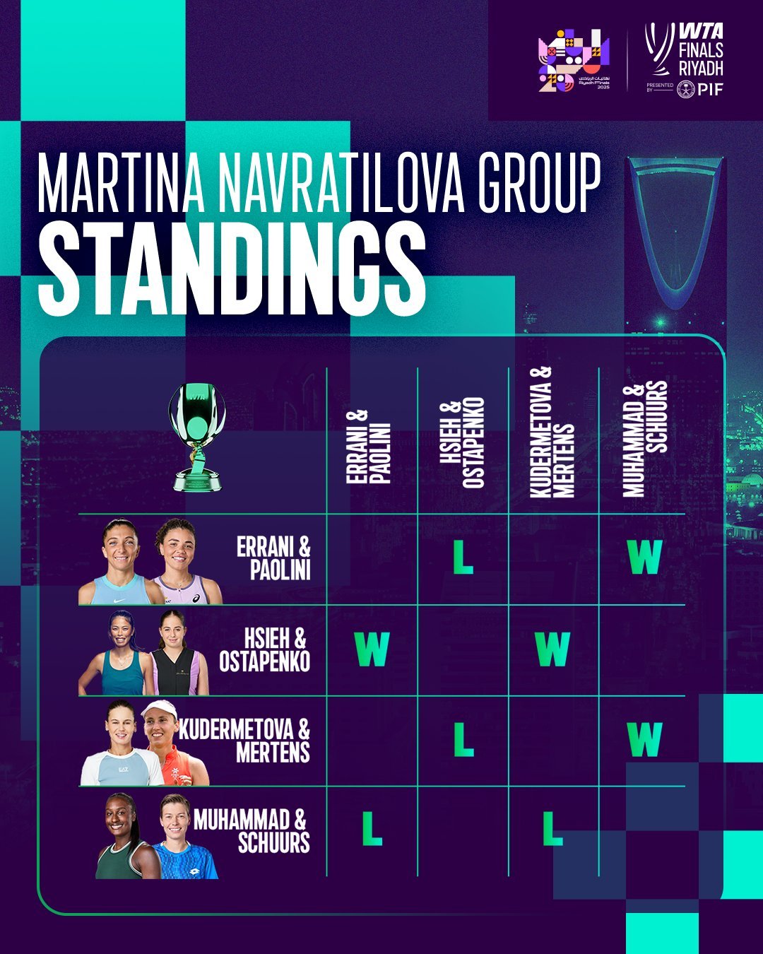 埃拉尼/保利尼将和库德梅托娃/梅尔滕斯争夺小组第二