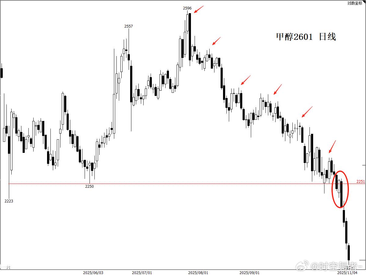 甲醇 盘面上看,还是有明显逻辑给了多头机会逃命的,跌破前低平台后开始加速,稍微犹豫下,后面迎接多头的就是极端走势。现在短期找不到支撑,只能看大周期,周线下一个位置对应2075/2035附近。期货
