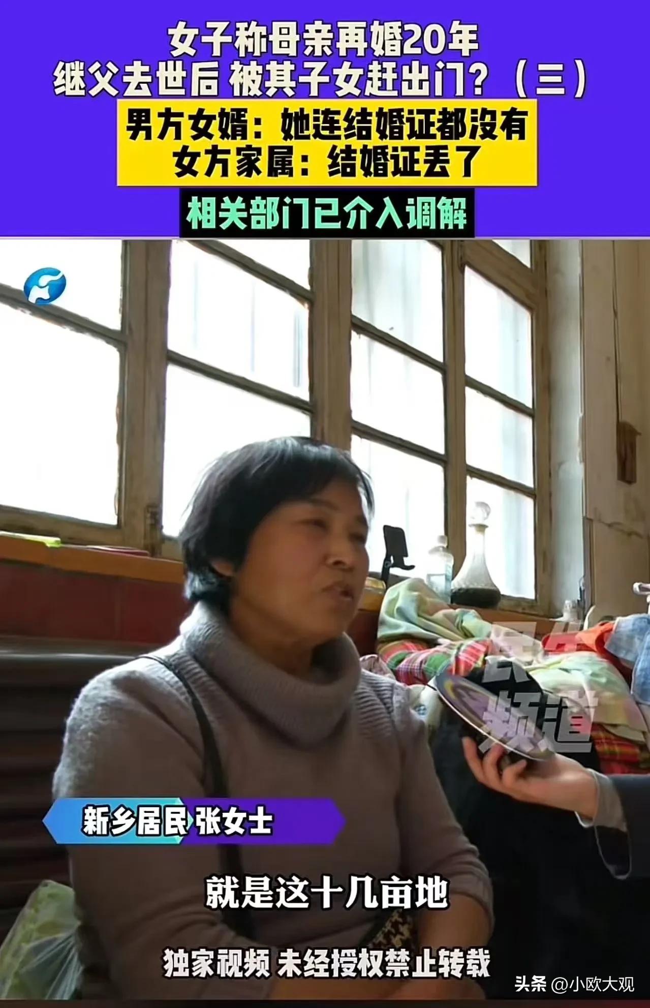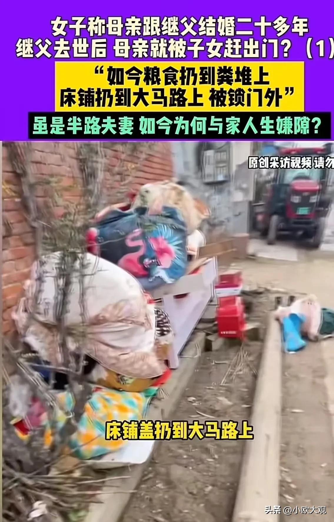 天杀的!活着不尽孝,死了争财产! 河南新乡的张女士20年前跟赵先生重组家庭,这婚结了23年,那时她才40来岁。 当时,赵先生的儿子在内蒙古,女儿嫁陕西,常年不回家,家里就剩赵先生和卧病的公公。 张女士嫁过来后就没闲着,天天给卧床的公公擦身喂饭,直到老人去世。 两年前,赵先生得癌症,他又日夜守着照顾,又出钱又出力。 可继子继女基本没露面,就女儿过来一次,给了2000块钱继子脑出血,行动不便,既没回来也没出钱。 2024年,赵先生去世,葬礼钱还是张女士掏的,继子儿媳都没出现。 结果今年10月,继女女婿和儿媳突然回来了,没跟张女士打一声招呼,就把她的衣服床铺扔到马路边,冰箱里的肉和粮食都撒粪堆上,锁了门就走。 还说“房子是他们家的不能住,地也是他们家不能种。” 继子继女说,赵先生生前口头说过,把十几亩地转包,租金补贴给病重的继子。 张女士说,自己20年尽心尽力,这就是卸磨杀驴。 女士的女儿气不过,找来节目组进行调解,她的女儿哭诉“继父活着他们不尽孝,死了以后就都来要房要地。我妈这20年尽心尽力的照顾,就算是雇个保姆也得给工资吧?” 遇到这样的事,真是令人气愤不已,弟子继女这样的行为,不仅违背了基本的道德伦理,更让人看到了人性的丑恶。 不求他们赡养继母,但念在照顾他们父亲多年的情分上也不应该赶出家门,容身之地都不给,太狠了! 这件事情也给所有向张女士这样的人提了个醒,二婚家庭本来就关系复杂,所以生前要写个书面遗嘱,说清楚财产怎么分,敏最后闹成这样。 对此,你怎么看呢?