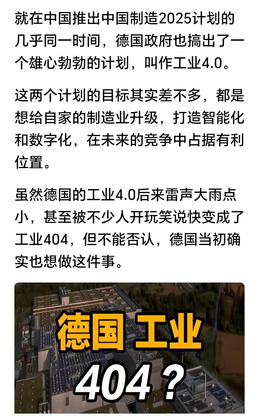 看完这些,你就知道德国外长为什么前段时间大放厥词了吧。德国现在已经被东大按在地上摩擦了。10年前他们搞工业4.0,东大跟着搞2025中国制造。 10年过去了,东大2025中国制造到今年上半年平均完成率达到86%,不少领域完成率达到95%。德国工业4.0变成了工业0.4,工业404。 尤其是汽车工业,德国人都在走私东大生产的大众电车卖回德国了。更不用说东大以迪子为代表的其他新能源车了。现在席卷整个欧洲,欧盟都疯了,公然想抢东大电池技术。 其实荷兰豆抢安世也是这背景原因。 德国被打得这么惨,肯定就有情绪。不友好的言论行为自然就来了。 我们讲共赢,但是别人想的就是零和。 所以,对他们这些行为可以理解,但绝不接受。不惯着。 点右上角关注我,我们一起去看这个魔幻的世界
