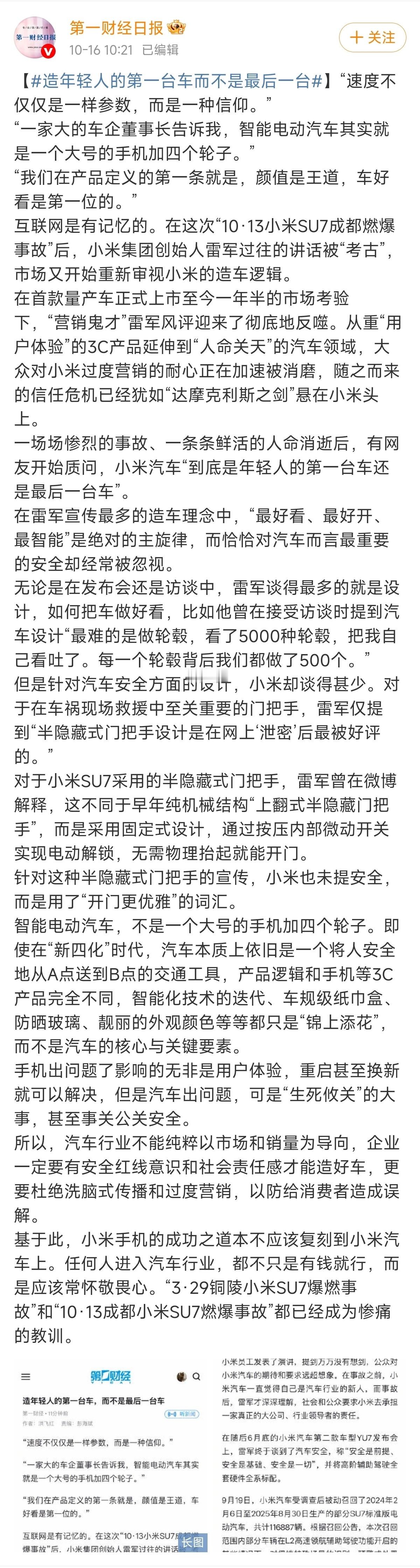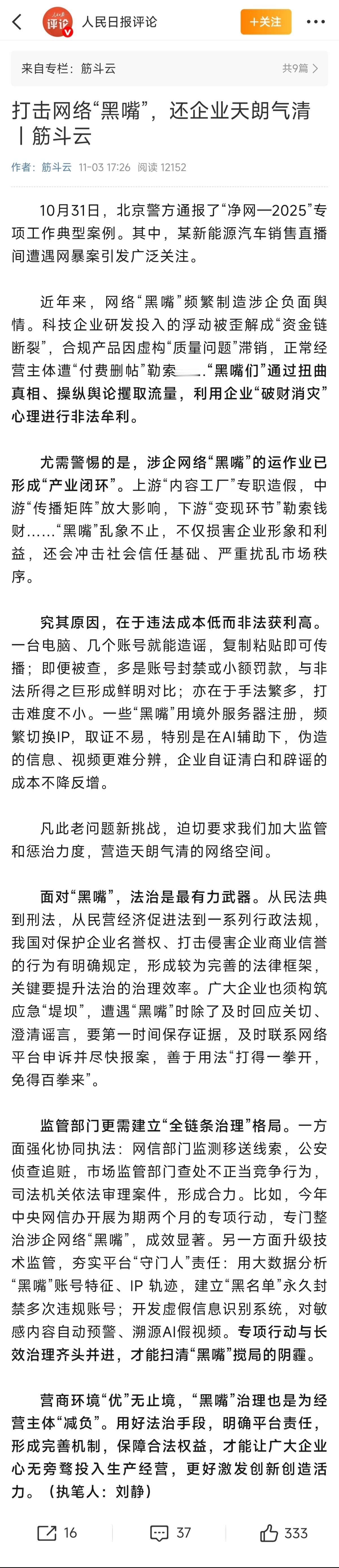 人民日报评论指出,治理“黑嘴”就是给企业“减负”。让小米汽车这样的公司能把所有资源投入到研发和生产上,而不是浪费在应对谣言上,这才是对中国创新最大的支持。