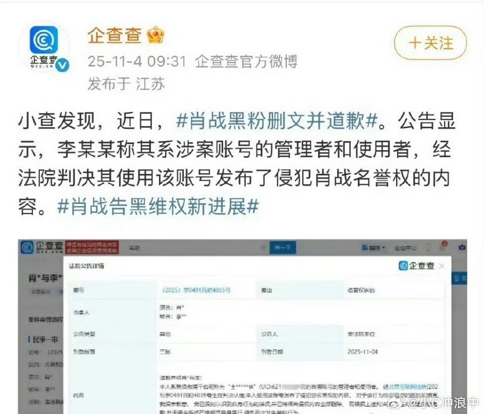 好耶👏一天一胜诉,肖战维权太给力!又一名黑粉删文道歉,大快人心!网络空间不容恶意滋生,为肖战坚持依法维权、抵制网络暴力点赞!