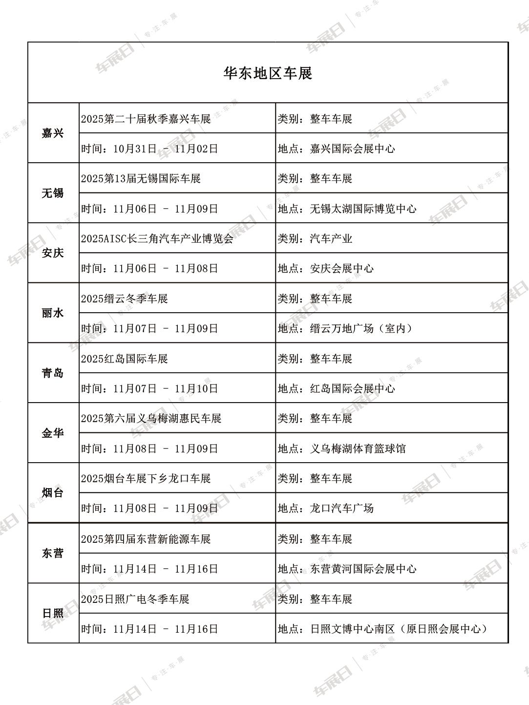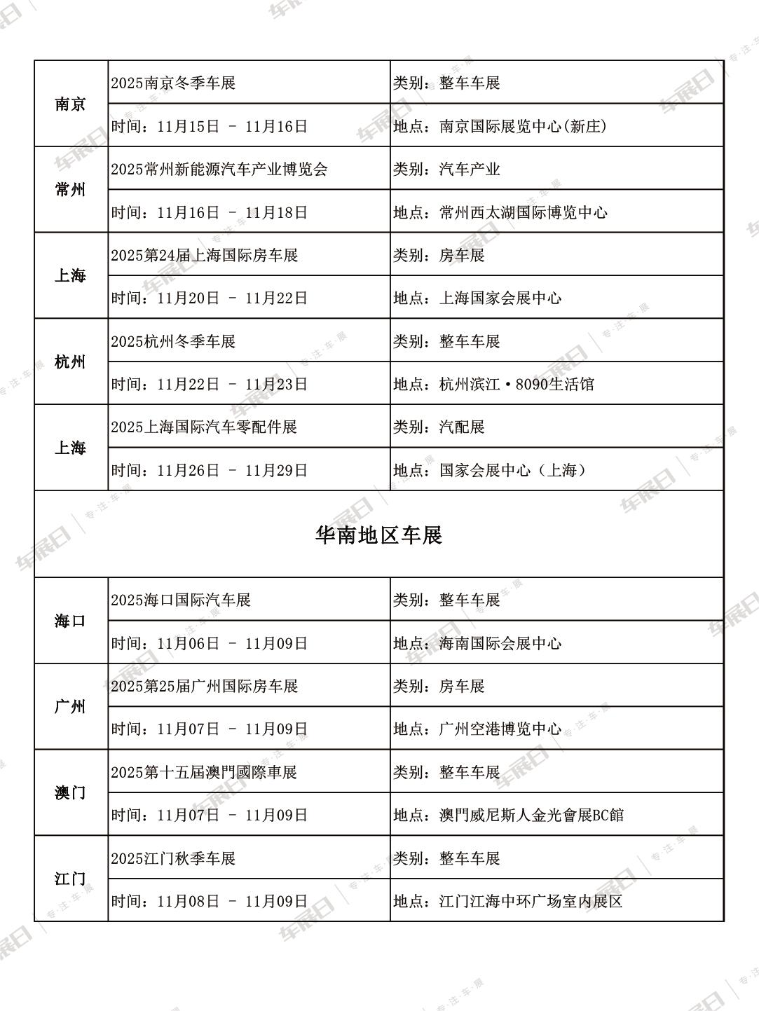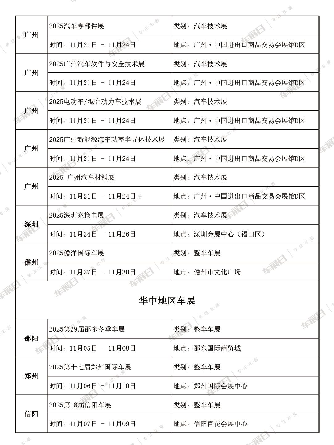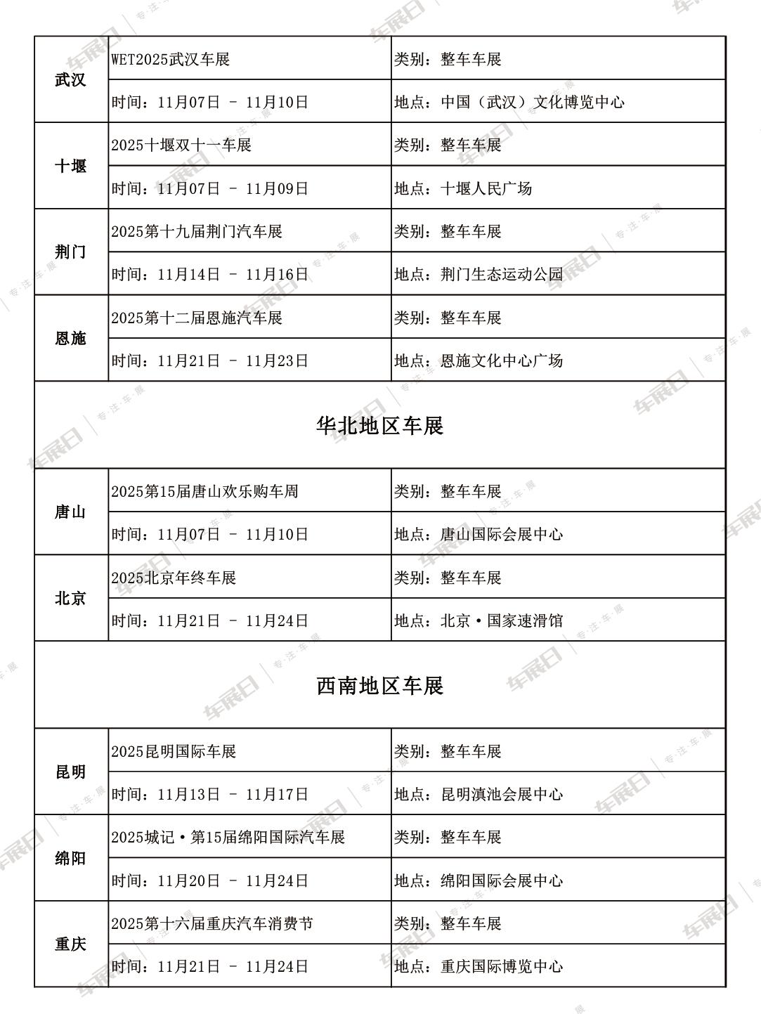 2025年11月全国车展时间安排表。我们收集整理了2025年11月全国各地车展排