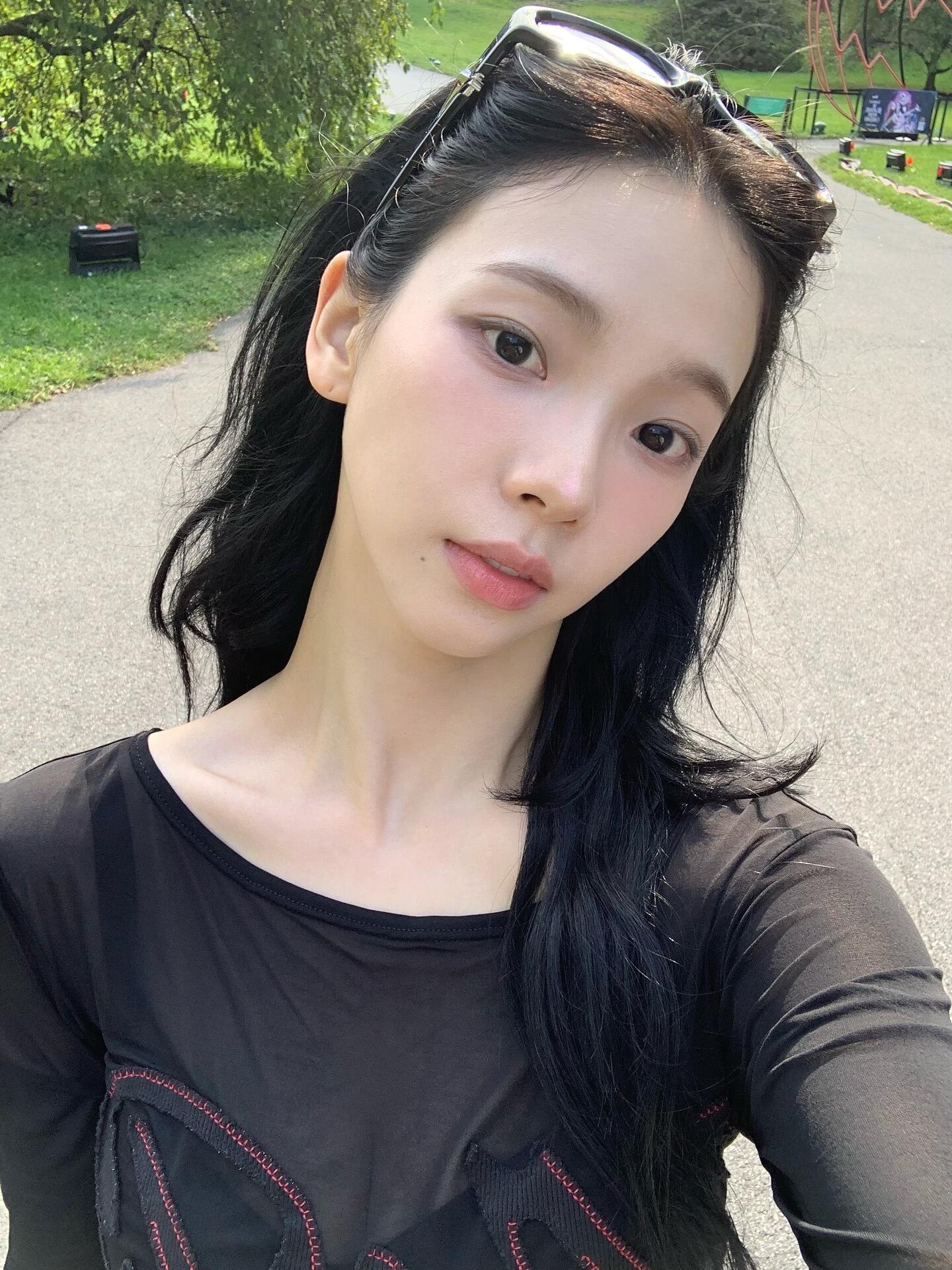 张天爱跟素人合影,胯真的好宽,大宅院似的