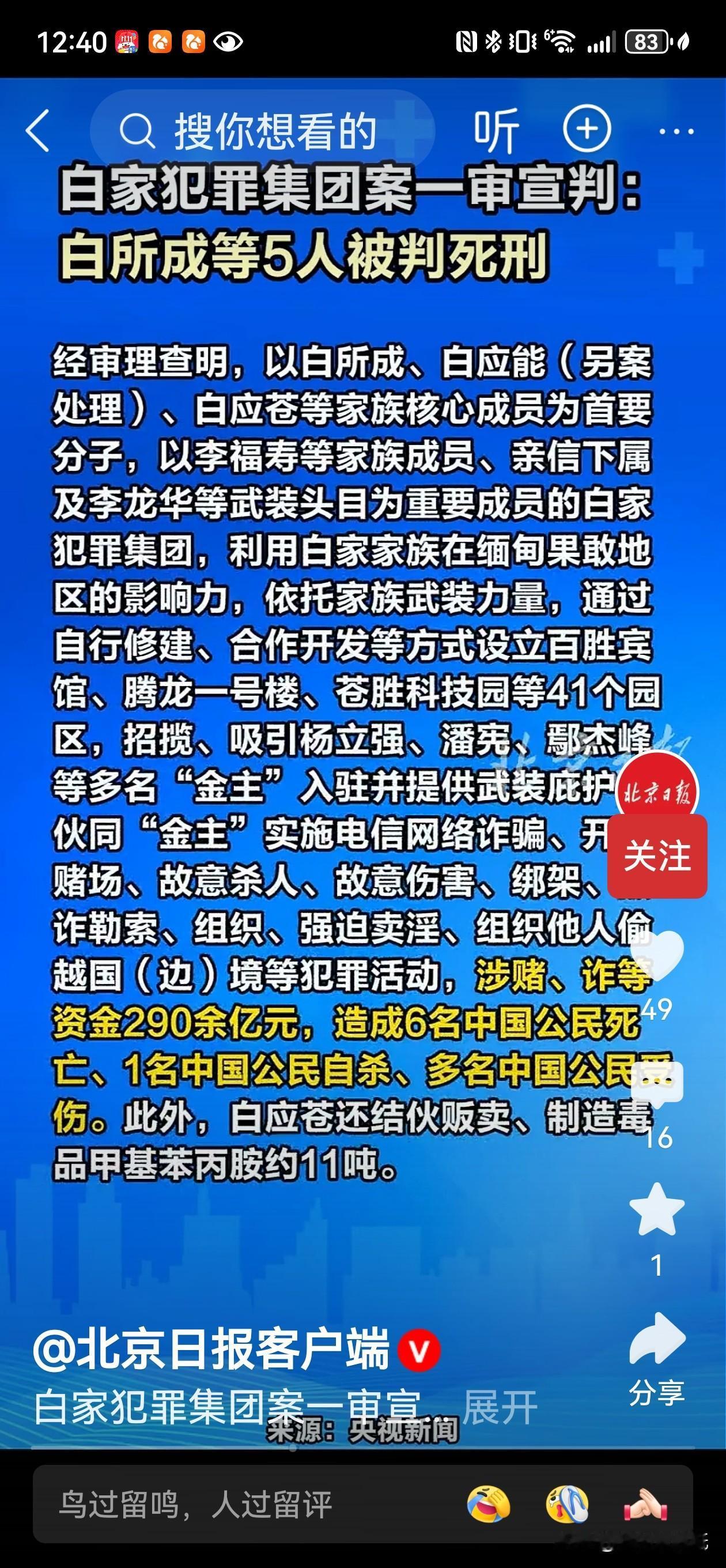 缅北四大家族的明家11人已判死刑,白家5人同样判了死刑!接下来,就轮到魏家和刘家了!坚决支持司法机关严惩电诈犯罪。 这伙丧尽天良的魔头,杀中国人祭天,抓中国人卖钱,骗中国人钱包,杀人越货,血债累累,罪大恶极。其罪行罄竹难书,天理难容! 今日下场,纯属咎由自取,罪有应得!