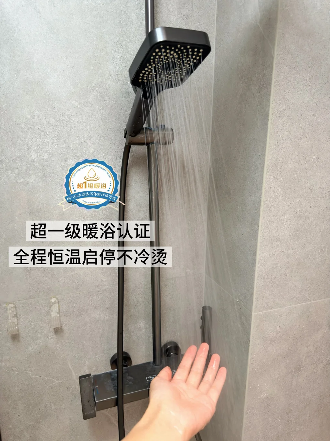 最让我安心的是它的储能循环恒温技术,超一级暖浴认证,现在洗澡再也不怕中途关水涂沐浴露、再开水时被烫到或冷到了,启停温差低至±0.8℃,几乎感觉不到变化,从头到尾水温都稳稳的。后来研究了一下,是内置了储能循环舱和循环泵,能把管道的烫水回收混合,保持水温恒定。多次开关水,温度始终如一