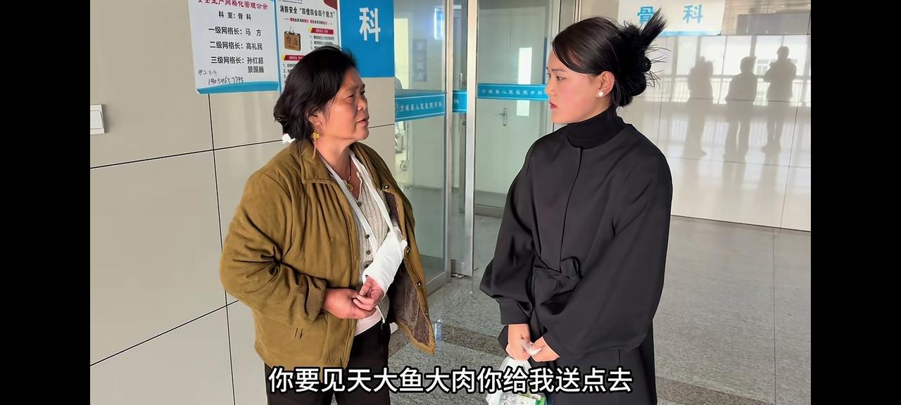 老壳子胳膊摔伤了 猫喜欢吃腥,前两天刚刚直播带货的李佳家,肯定有货底,有好吃的,就把这个馋猫招来了,门锁着,进不去,怎么办,趁家没人,翻墙而过,你不想想近60岁的人了,把左胳膊摔伤了,偷鸡不成蚀把米,雨露,灵洋带她去的医院。 这样子的结果是:又有人侍候吃好的,又不担搁来牌,因为伤的是左手。 老壳子说:“伤筋动骨一百天”那意思就是让闺女和儿子侍候她一百天,闺女负责看病及吃喝,儿子负责给钱,来牌自由。挨摔了,反而变成了好事,有人管了。 要是不摔伤了,雨露怎么会带着她去饭店吃饭?为了每天能吃到有大肉肉的饭,摔骨折也值了!