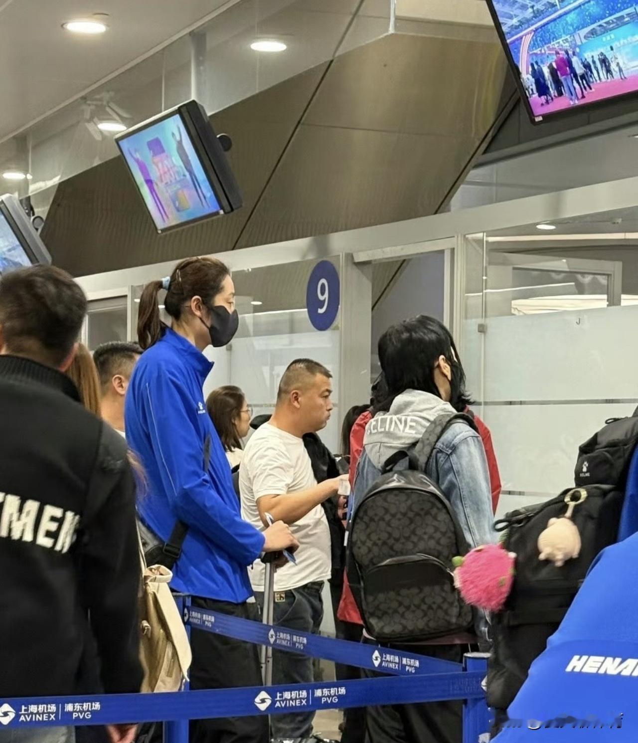 朱婷出发全运会了[加油][加油]河南女排今日在上海浦东机场,准备飞往✈️澳门,参加周五的全运会!有网友今日在上海机场偶遇到河南女排,正在排队过安检,人群中看到了熟悉的身影朱婷,身穿蓝色的队服,扎着马尾辫,戴着黑色口罩!又可以看有朱婷的比赛了,我们周五澳门见!这几天可把朱婷忙得不行了,又是指导队员打比赛,又是跟队友一起合练,备战全运会的!