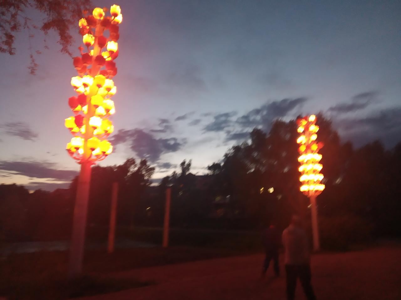 莲花公园的夜晚,多像一位慈祥的老人安静进入梦乡 牡丹江莲花公园的夜景也很美,如果不说你冷眼看图片还以为是那个社区或者那个勾栏瓦舍。 莲花公园喧嚣了一天,夜晚沉浸在寂静之中,荷花也羞闭了容颜。 游玩了一天的鱼儿也该卧在水底放松一下,嫩绿的小草在轻声细语。青蛙开始上岗,它们分片巡逻,忙个不停,夜晚中飞舞的蝇虫是青蛙的美餐。 莲花公园的夜晚是这样的静谧、安详,它彷佛像是一位慈祥的老人,为女儿忙碌了一天,夜晚定要好好度过一个安静、平和、幸福的夜晚,进入甜美的梦乡。