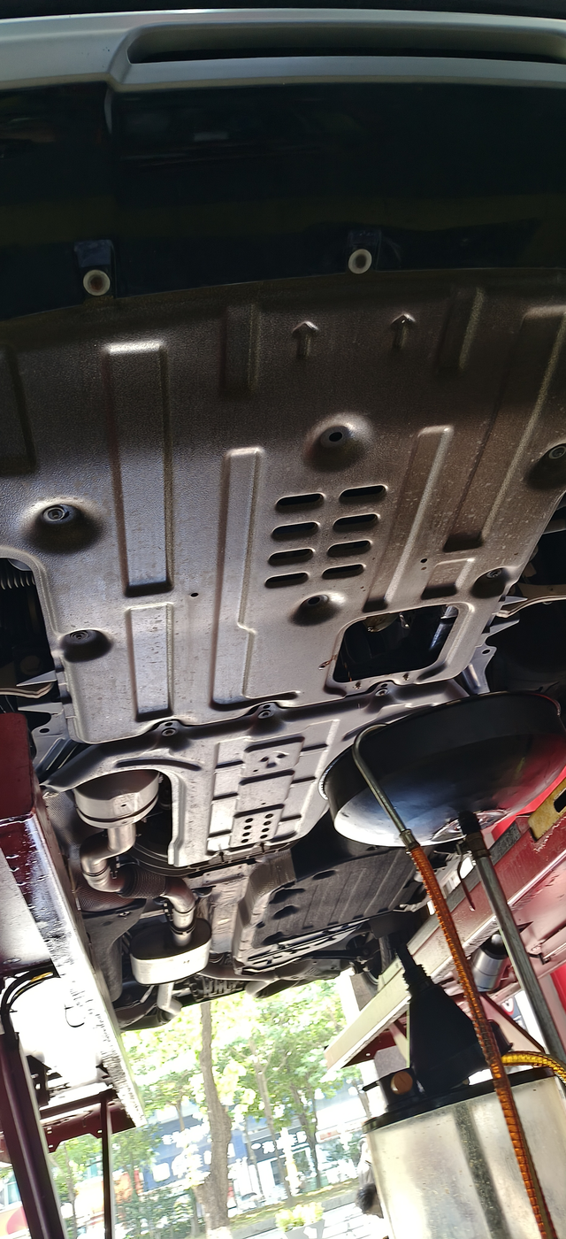 一万公里换油保养果然中招了! 大探一万公里换油保养,选了原厂标号粘度的银美孚1号,粘度5W-30W的先进全合成机油,换油时顺便查看了一下底盘,因为之前有车友反馈大探减震漏油是通病,所以特地钻下面仔细检查,果然不出所料,发现左后减震中招,我在想,新车才一万公里这玩意儿就漏,证明福特选择的材料供应商很烂,为什么这么多漏油事件不重视一下减震品质呢,给消息者体验真的好差,虽然可以索赔换新,但给消费者造成时间和精力上的浪费,包括体验感上大打折扣,新车就开始修,谁心里都不舒服的。希望福特能重视消费者的反馈,加强材料供应商的品质要求,让更多消费者省心,放心。 其他地方全部检查了一遍,没有什么问题,这次就发现一条减震漏油,希望大探底盘能继续保持,下一个一万公里不想再发现问题了,要不然心里太难受了。