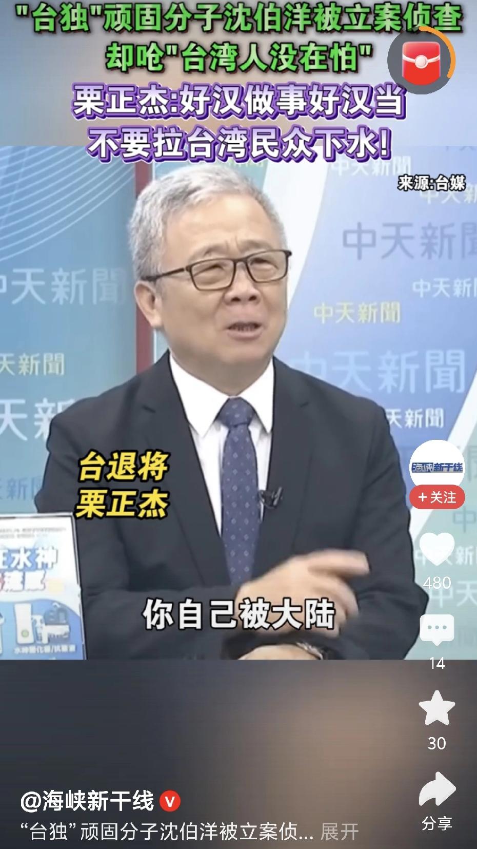 台退役少将栗正杰当着人面就怼沈伯洋:你自己怕得躲起来,还敢叫台湾人当炮灰?这话一